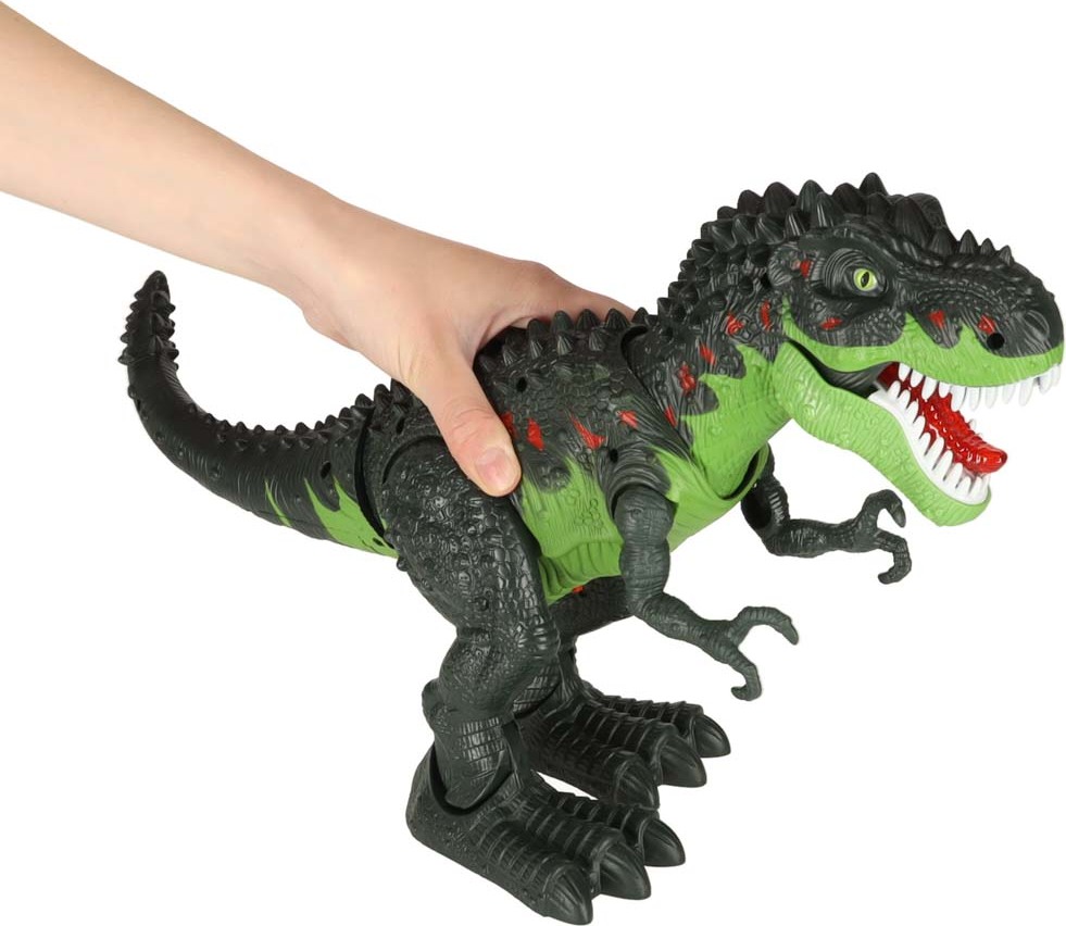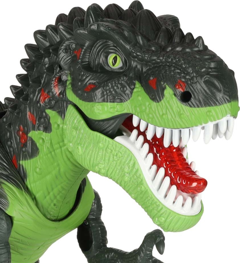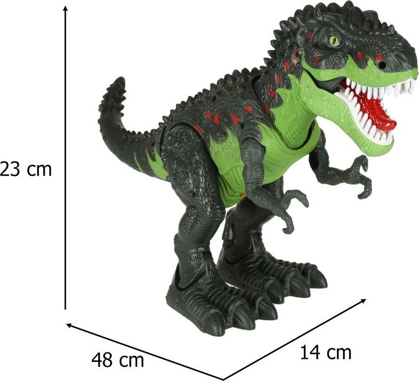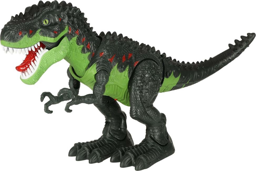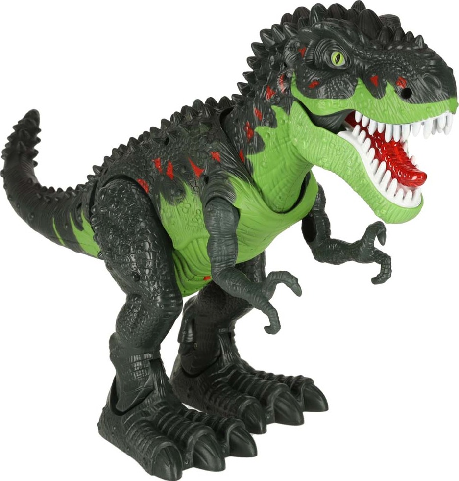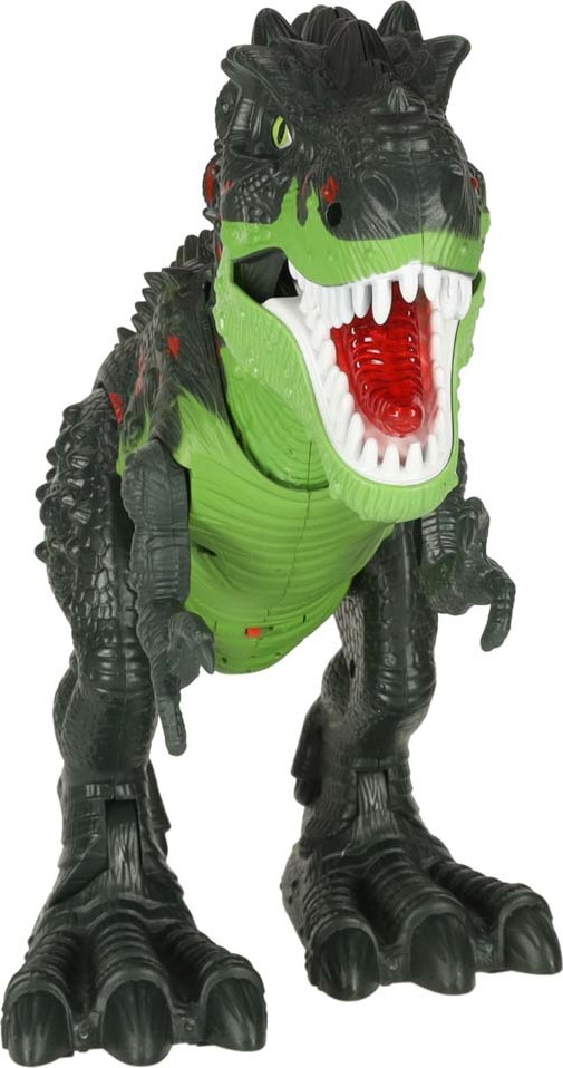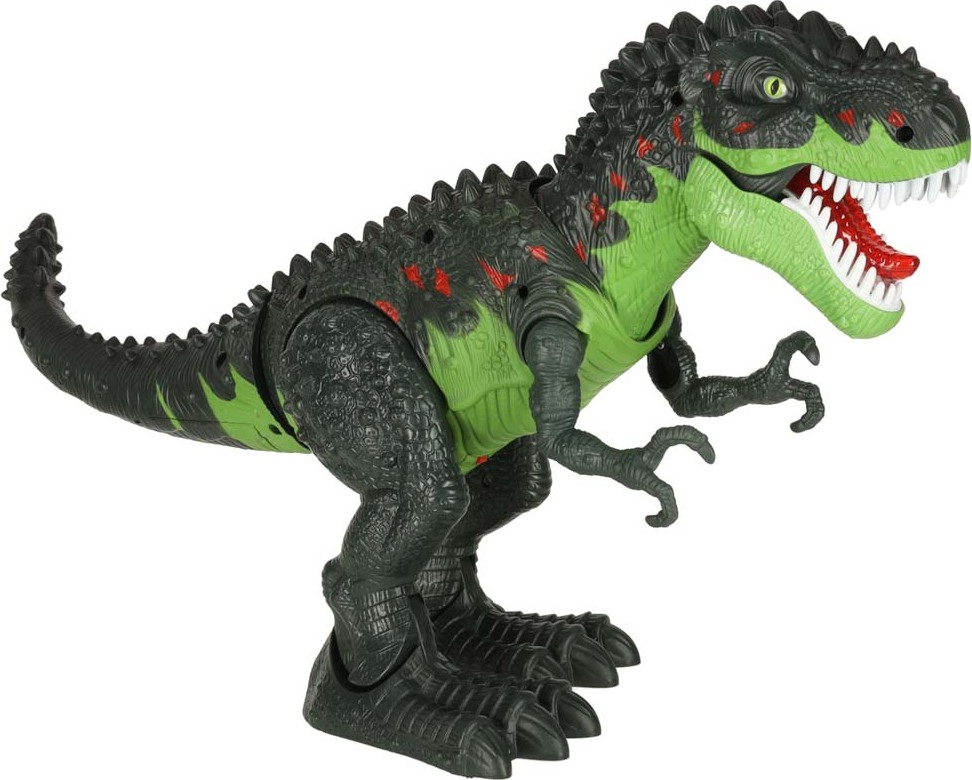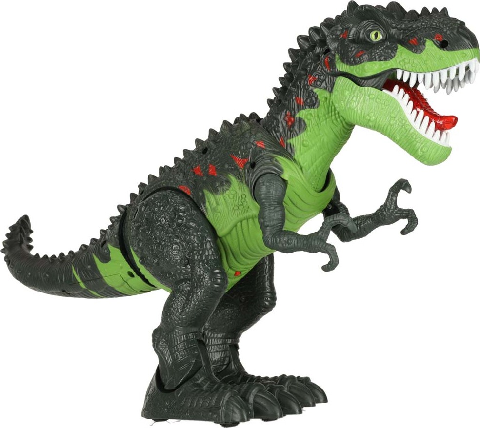 Elektronický T-REX DINOSAUR je skvělou volbou pro děti i starší fanoušky prehistorických figurek. Dinosaurovi se rozsvítí oči a tlama. Chodí, vydává realistický, hlasitý řev a svítí. Má pohyblivé přední nohy a pohyblivou hlavu. Tlačítko napájení aktivuje všechny funkce dinosaura.