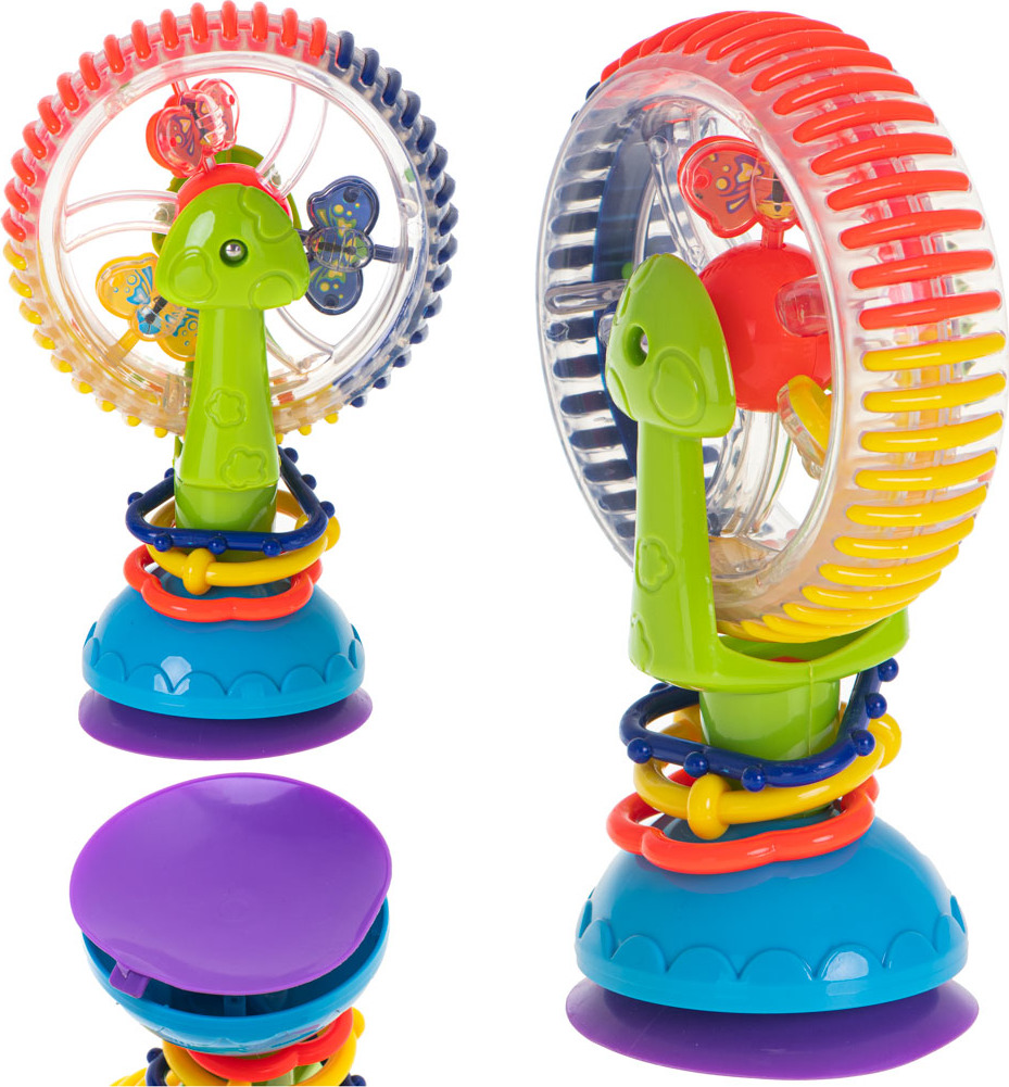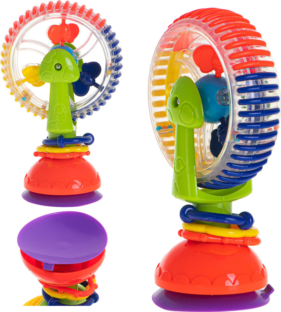 Barevná hračka připomínající ruské kolo. Zářivé barvy zlákají vaše dítě ke hraní. Hračka má přísavku, která zabraňuje jejímu převrácení během hry. Je perfektní jako hračka do vody. Fantastická hračka, která pozitivně ovlivňuje zrak a hmat vašeho dítěte. Při hraní se vaše dítě naučí rozlišovat barvy. Barevné kuličky, které se uvnitř kutálejí, fungují jako chrastítko.