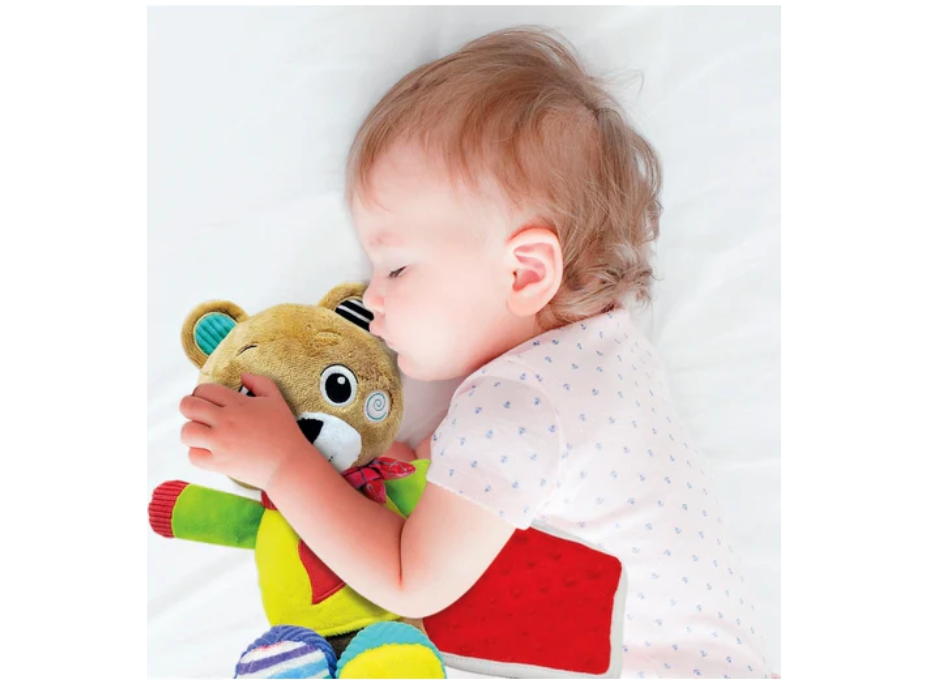 Roztomilý plyšový medvídek na mazlení bude dělat společnost malým dětem nejen v prvních měsících jejich života! Měkká plyšová hračka z různých druhů textilních materiálů pro multisensorickou stimulaci, s měkkým šidítkem, které pohlcuje matčinu vůni a uklidňuje dítě během fáte odpoutávání, stimuluje rozvoj smyslového vnímání, baleno v pevné dárkové krabičce, vhodná pro uskladnění hračky nebo jako domeček pro medvídka, lze prát v pračce při max teplotě 30°C program pro jemné prádlo. Rozměry: 30 x 15 x 8 cm. Značka BABY CLEMENTONI je synonymem kreativity, nadšení a důrazu na kvalitu. Hračky pomáhají rodičům při komunikaci s dítětem. Vzhled hračky a její inovativní barvy, netoxické a pevné materiály, vytvarovaný povrch a různé funkce pomáhají při rozvoji hmatových a sluchových schopností, napomáhají pohybové aktivitě a vyvolávají první logické asociace.Vlastnosti