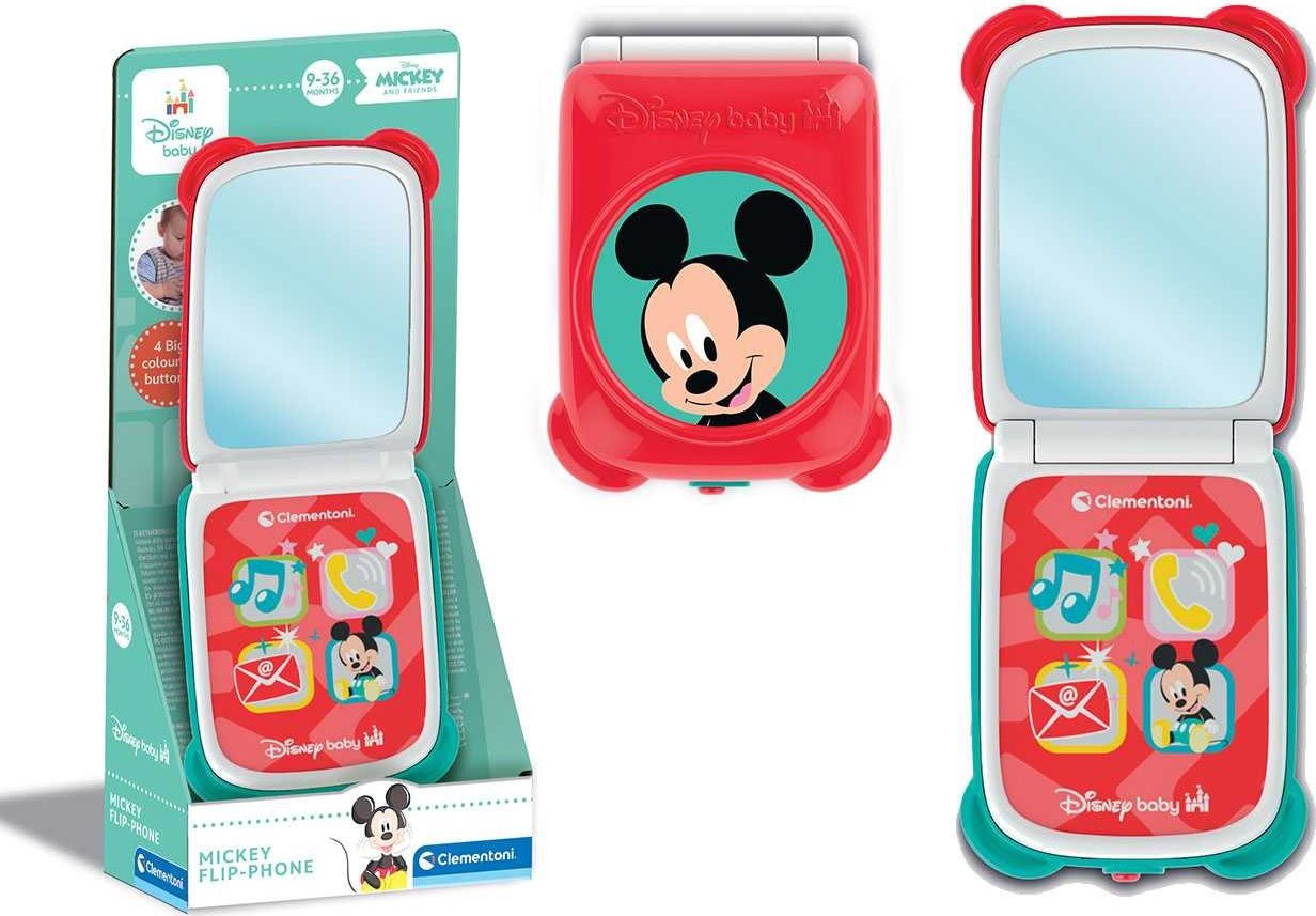 Roztomilý Clementoni Mickey Flip Phone , skládací dětský “smartphone” s motivem Mickeyho, ideální pro napodobování telefonování a videohovor. Obsahuje 4 svíticí tlačítka a zrcátko-obrazovku, které podporují dětskou představivost a senzomotorické zpracování. Podporuje imitativní hru, rozvoj sluchu, zraku a jemné motoriky u nejmenších. Vhodný pro děti ve věku od 9 do 36 měsíců, bezpečně navržený ve spolupráci s Disney. Vyvinutý, navržený a vyrobený v Itálii, s bateriemi součástí balení pro okamžité použití.
