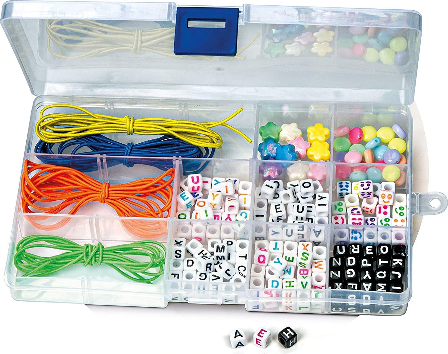 Náramky v zářivých a třpytivých barvách, na kterých lze sestavit své jméno nebo oblíbené značky a vyjádřit tak svou kreativitu a jedinečný styl. Náramek může zpečetit přátelství a stát se módním dopňkem pro každou příležitost. Výběr barev podle módních trendů, které vyhovují vkusu malých dívek. Obsahuje: krabičku, elastické šňůrky, ozdobné korálky, korálky s písmenky (3 kompletní anglické abecedy): bílou na černém pozadí, černou na bílém pozadí a barevnou na bílém pozadí, obrázkový návod.Vlastnosti