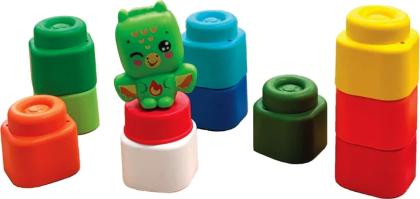 - Součástí balení je figurka draka, která zpestřuje zábavu a vybízí k vytváření prvních věží a konstrukcí.