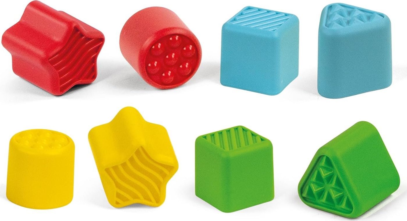 Hrací set s roztomilými postavičkami Bing motivuje děti k objevování okolního světa. Osm kostek různých tvarů a textur odpovídají otvorům ve střeše. Zlepšuje manuální koordinaci a logické myšlení při spojování tvaru a šablony otvoru. Stimuluje smyslový vývoj doteku díky výrazným texturám na tvarech a měkkému povrchu střechy autobusu. Hmatová vkládačka je vhodná také pro nevidomé děti.