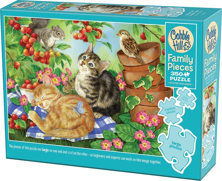 Skládá celá rodina! Jedinečnost rodinného puzzle od výrobce Cobble Hill spočívá v tom, že balení obsahuje dílky ve třech odlišných velikostech. Dílky mají malou, střední a velkou velikost a skládání je tak pohodlné pro děti, rodiče i prarodiče. V jedné části obrázku jsou velké dílky, které jsou díky svým rozměrům vhodné pro menší děti. Na druhé straně skládaného motivu jsou malé dílky, vhodné pro dospělé a větší děti, které jsou již zvyklé skládat puzzle. Prostřední část puzzle obsahuje dílky střední velikosti, na těchto dílcích jde zřetelně vidět skládaný motiv a sestavování obrázku je tak vhodné pro starší děti, babičku i dědečka. Velikosti dílků: velké cca 6 cm střední cca 3,5 cm malé cca 2 cm Raznice puzzle COBBLE HILL nekopíruje standardní mřížku, rohy a hrany dílků nejsou vždy v jedné ose a dílky mají neobvyklý tvar. Obtížnost puzzle je tak vyšší než u klasické mřížkové raznice, kterou používají přední výrobci v Evropě. Součástí balení je i předloha o velikosti 31,6 x 22,9 cm. Rozměr složeného puzzle cca 67,6 x 48,9 cmVlastnosti