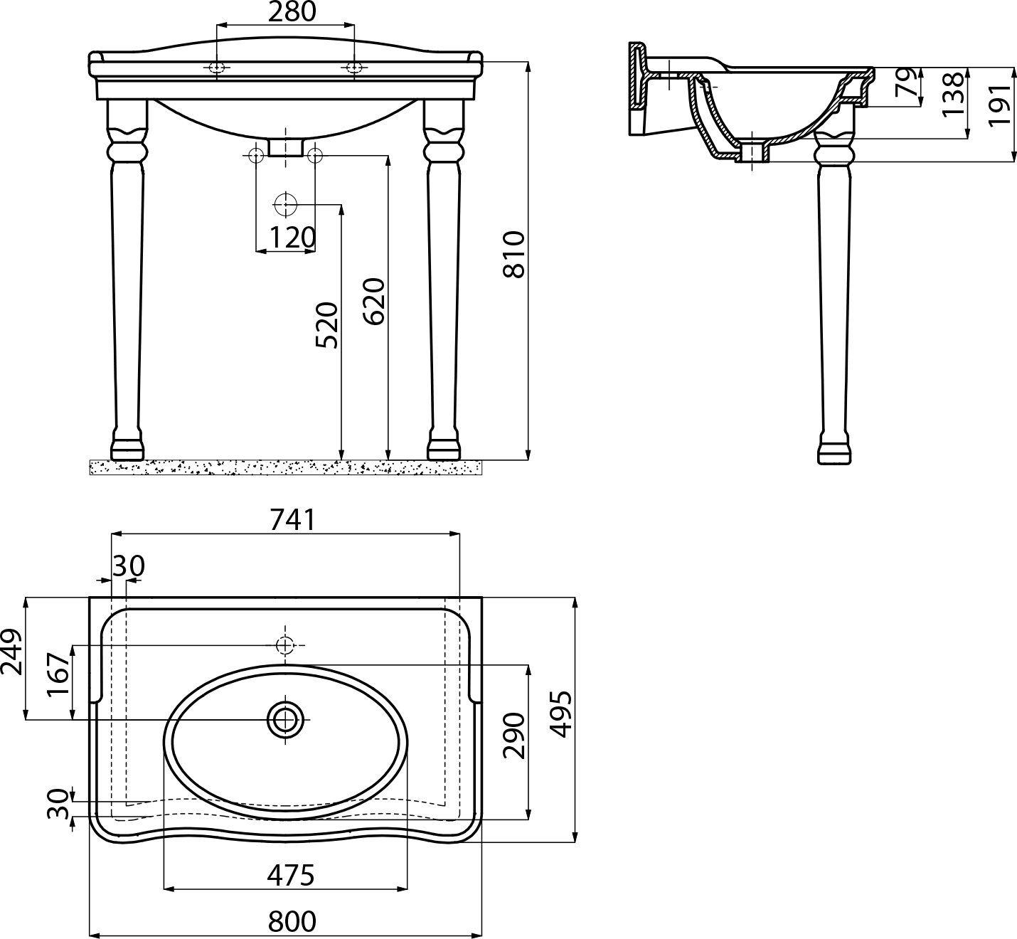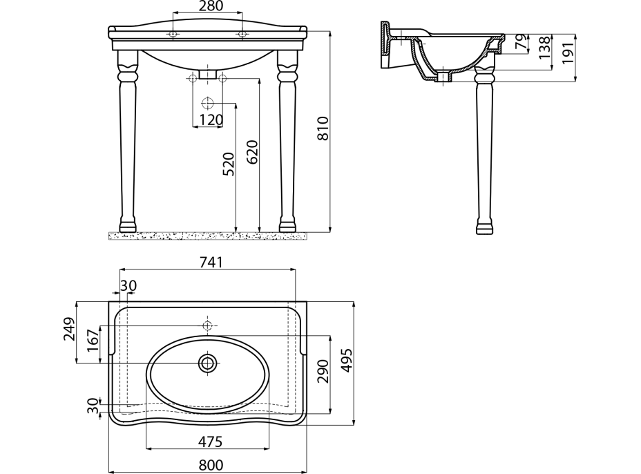 CREAVIT ANTIK keramické umyvadlo 80x50cm, bílá AN080