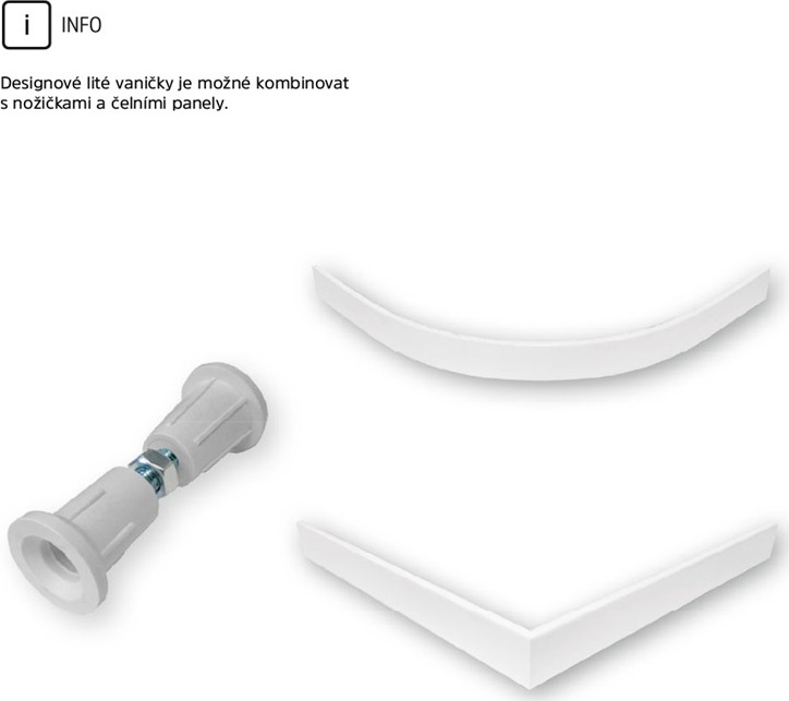 Varianta montáže litých vaniček (nožičky a panel nejsou součástí balení):