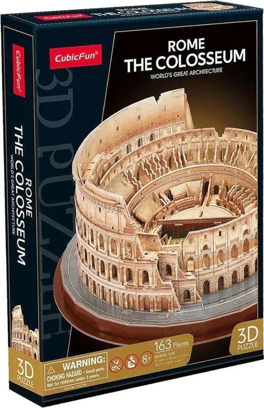 Jedinečný 3D model slavné starověké arény, kde se gladiátoři utkávali na život a na smrt. 3D puzzle - stavebnice od CubicFun vyrobená ze speciálního materiálu - asi 3mm silné pěny potažené laminovaným potištěným papírem. Sestavování 3D puzzle Cubicfun je zábavou pro celou rodinu. Hotové modely mohou být sběratelským a dekorativním doplňkem bytu nebo dětského pokoje. Dílky se k sobě sestavují pomocí návodu bez použití lepidla a nůžek - předražené dílky pouze jednoduše vylomíte z archu. Koloseum nebo Římské koloseum, původně Flaviovský amfiteátr (latinsky: Amphitheatrum Flavium, italsky: Anfiteatro Flavio nebo Colosseo), je oválný amfiteátr v centru města Říma v Itálii. Jde o největší amfiteátr, který byl kdy v římské říši postaven. Je to jedno z velkých děl římské architektury.