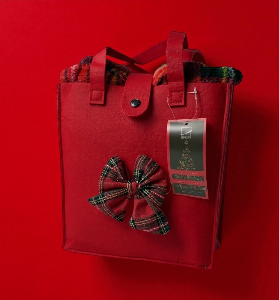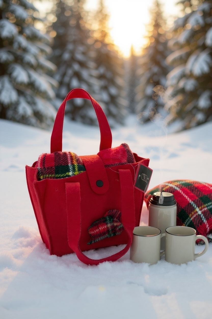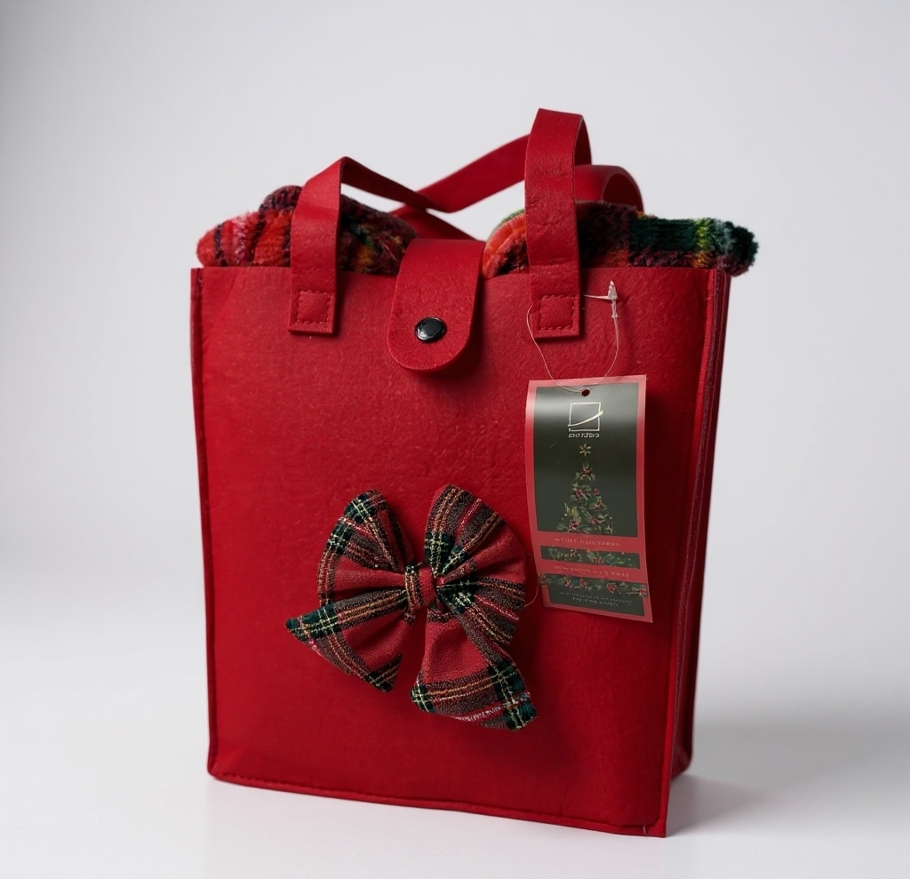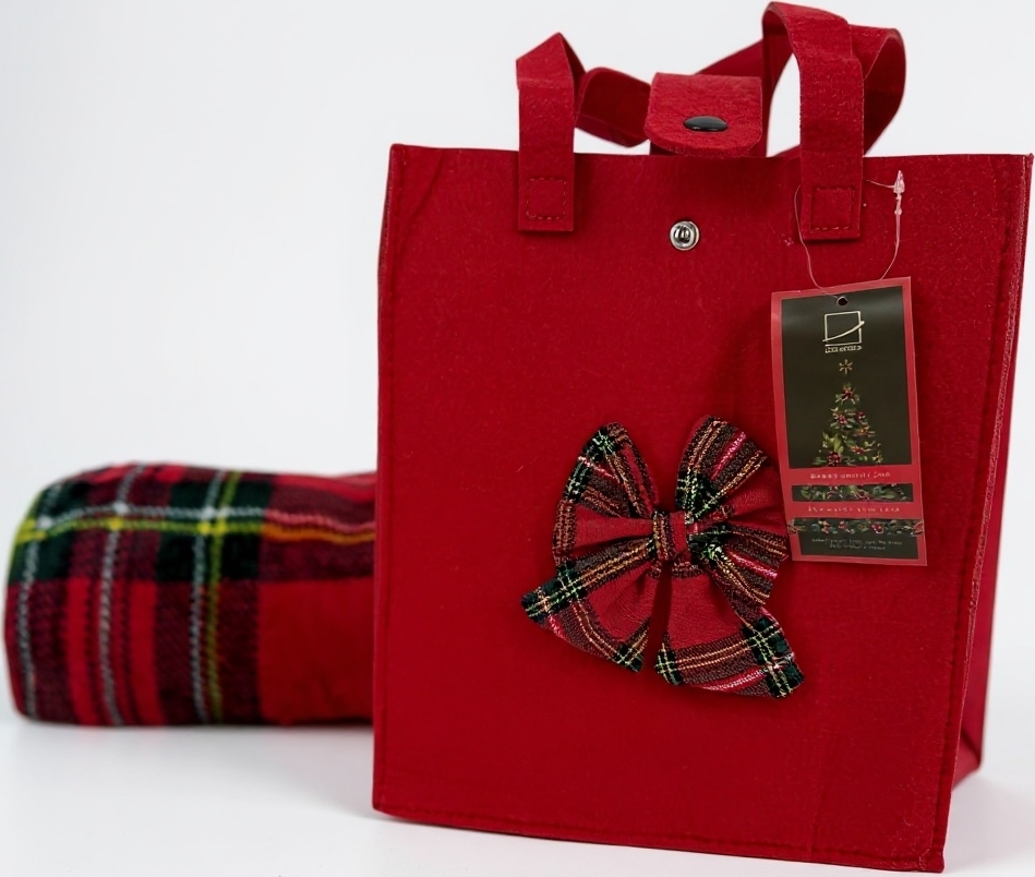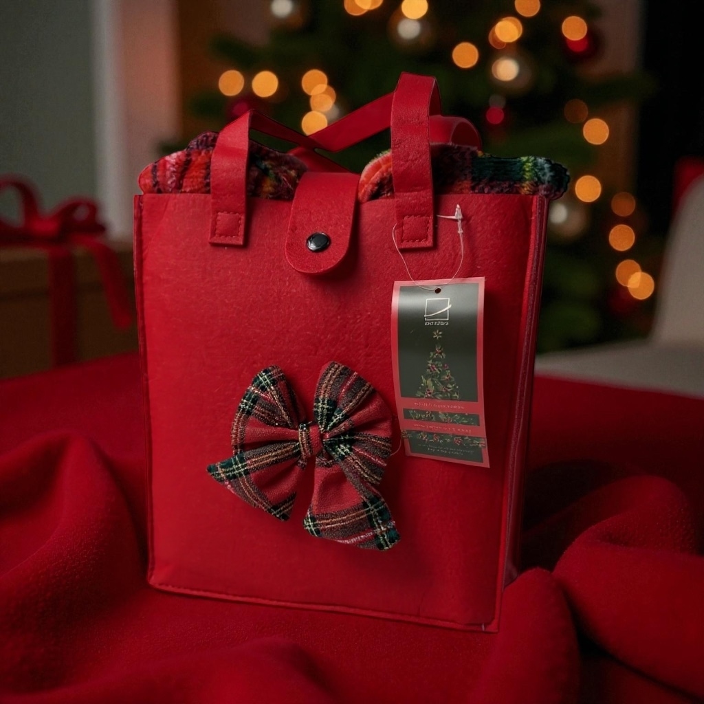 Sada LUXE WINTER MOMENT v sobě spojuje eleganci, funkčnost a sváteční kouzlo. Sada obsahuje měkkou, teplou deku zabalenou ve stylovém, zářivě červeném plstěném sáčku zdobeném klasickou kostkovanou mašlí. Sáček se zapíná na patentku a má praktické ucho, díky čemuž je ideální nejen jako dárková taška, ale i jako praktická nákupní taška nebo taška na drobnosti.