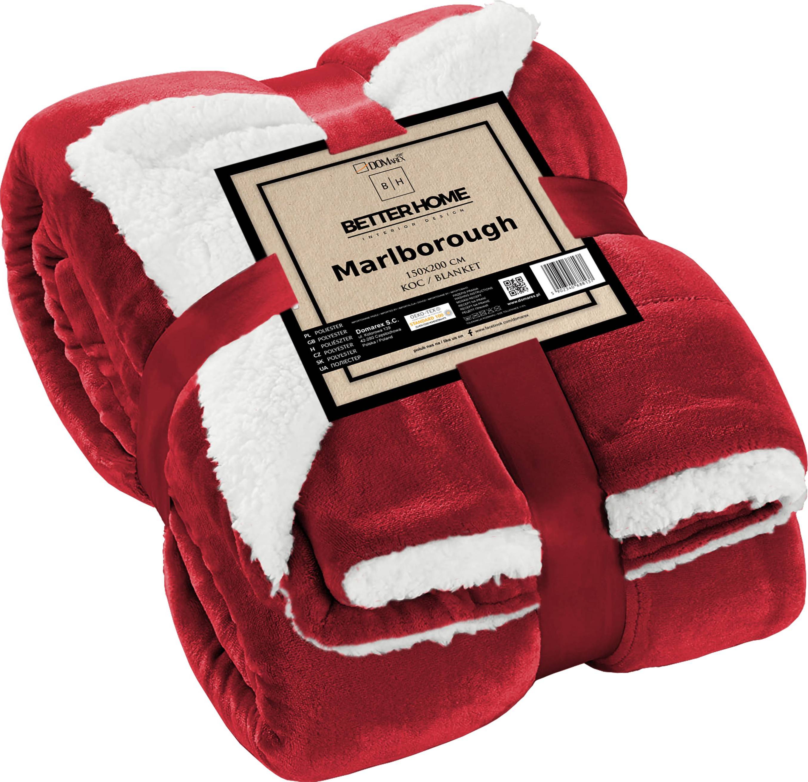Jedinečná, měkká a hřejivá oboustranná deka MARLBOROUGH je vyrobena z kvalitního mikroflanelu. Vnitřní strana má strukturu beránka, vnější strana je jednobarevná s krásnou červenou barvou. Deka je velmi jemná, nadýchaná a příjemná na dotek, díky čemuž jemně obalí tělo během chladnějších dnů. Dá se použít také jako přehoz na postel nebo pohovku.