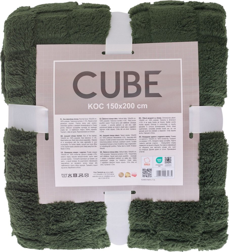 Deka CUBE je měkká a má nadýchanou strukturu. Díky polyesterovému mikrovláknu, ze kterého je deka vyrobena, je velmi lehká a příjemná na dotek. Deka zaujme svým vytlačovaným kostkovaným vzorem, který ji činí velmi originální. Kromě praktických hřejivých vlastností hraje skvělou dekorativní roli, kdy ozdobí každý interiér. Deku lze také použít jako přehoz na postel, křeslo nebo pohovku. Díky krásným barvám jsou deky CUBE také vhodné jako dárek. Deku lze prát v pračce.