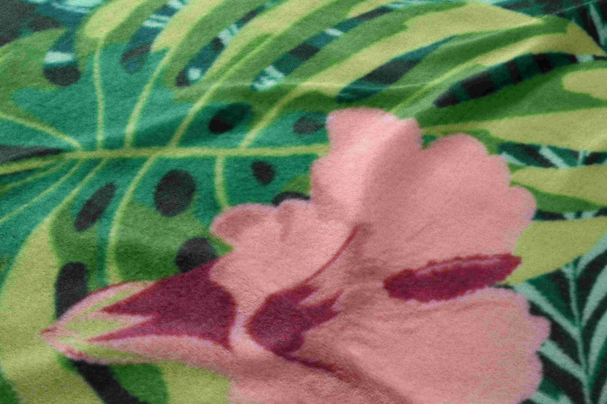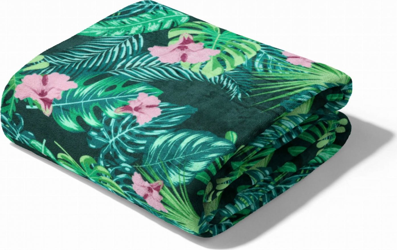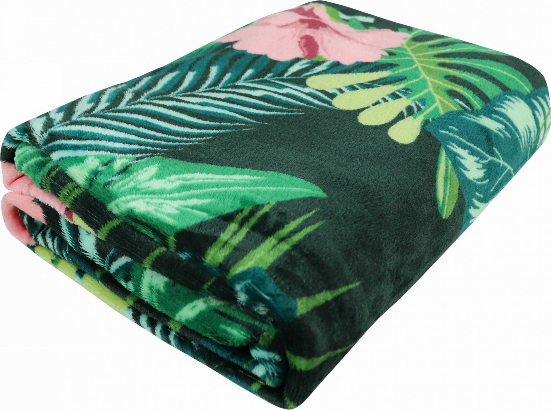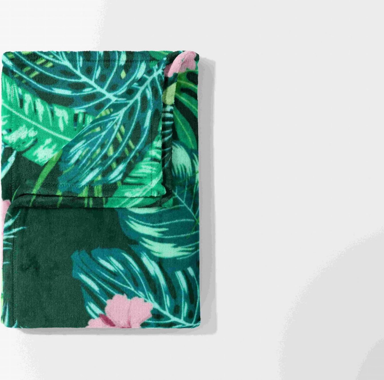 Módní a na dotek příjemná deka s exotickým vzorem palmových listů v krásných odstínech zelené je vyrobena z kvalitního mikroflanelu, který se vyznačuje vyšší hustotou vláken, díky čemuž je deka velmi jemná na dotek. Vysoká kvalita použitých materiálů, preciznost a solidní zpracování zaručují dlouhodobé používání. Deka nejen příjemně zahřeje, ale lze ji také použít jako stylový přehoz přes postel, pohovku nebo křeslo.