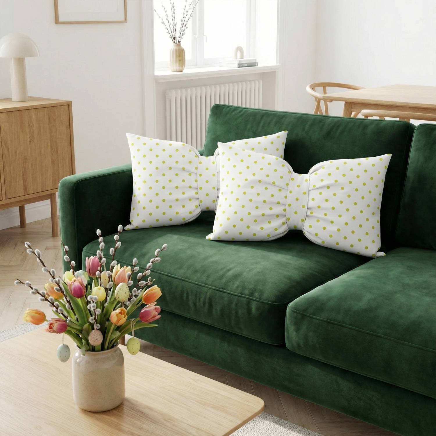 Dekorační polštář GLAM 30x50 cm - bílý/zelené tečky