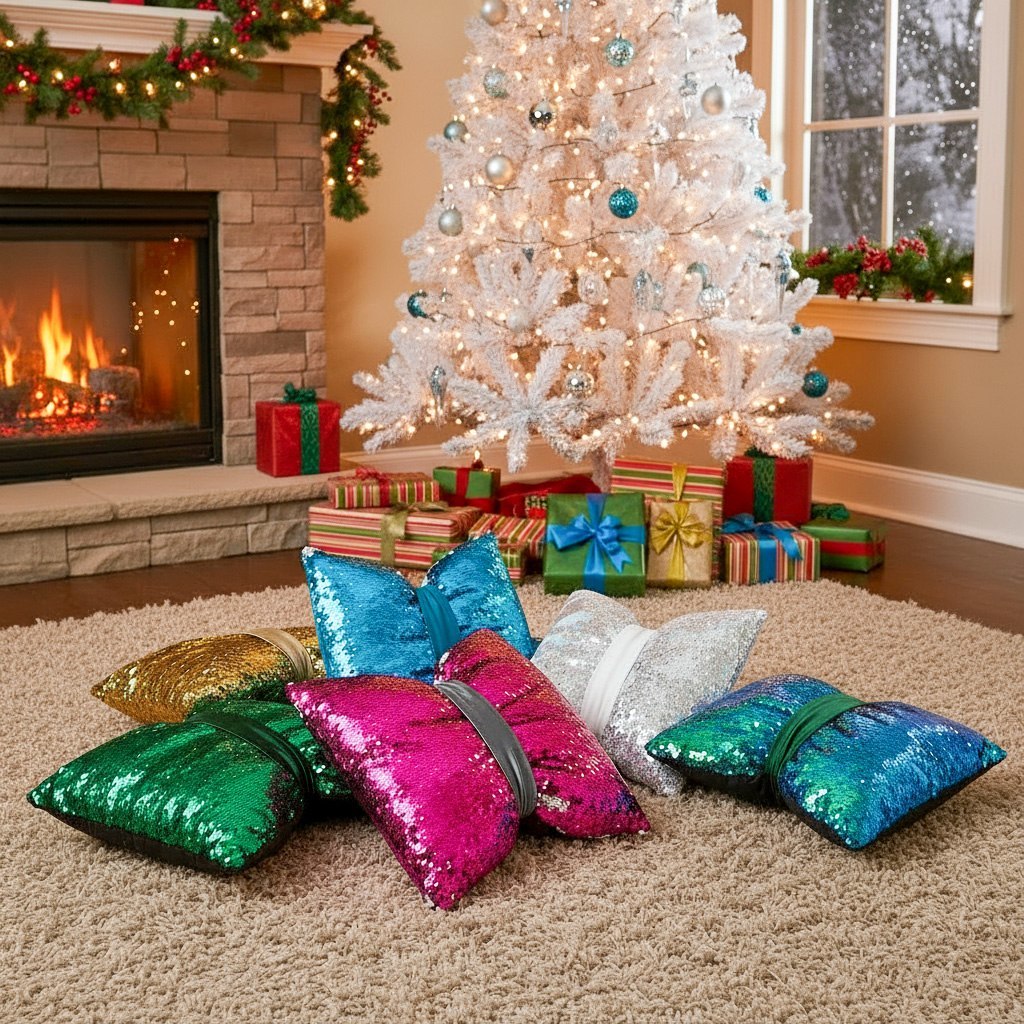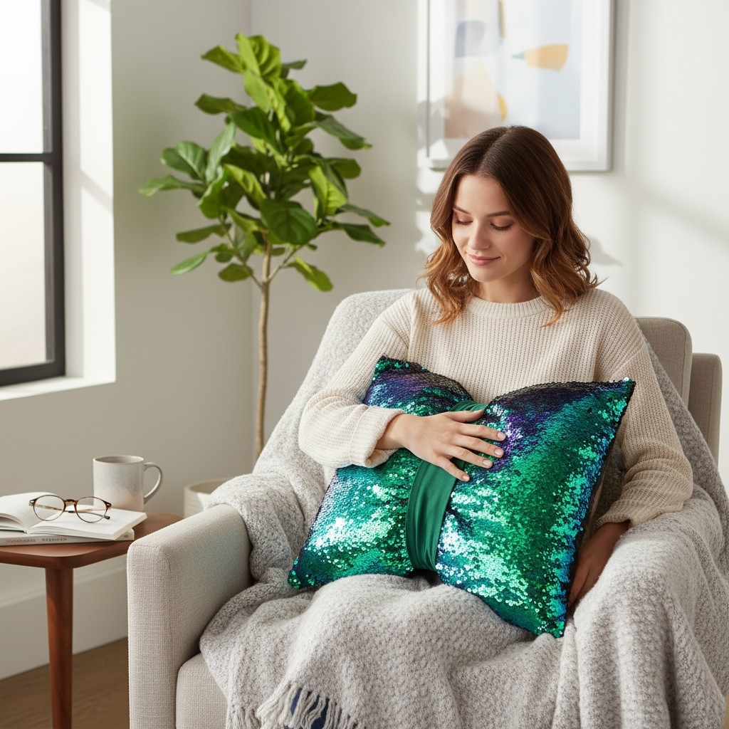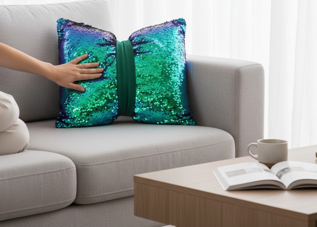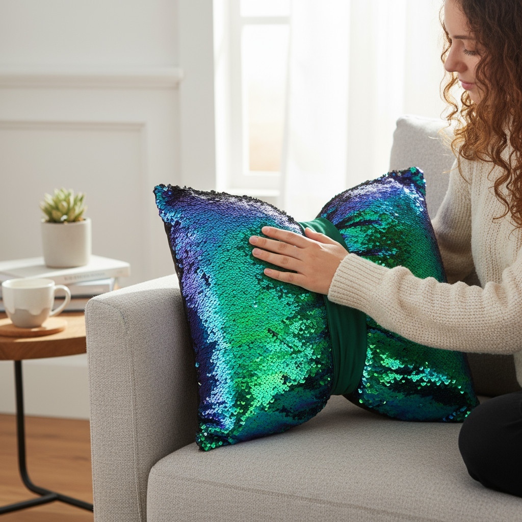 Polštář Glam Shine je moderní dekorace, která kombinuje eleganci s kreativitou. Přední strana, vyrobená z dvoubarevných flitrů, vám umožňuje vytvářet si vlastní vzory – stačí přejet rukou, abyste změnili barvu a dodali svému pokoji jedinečný nádech. Na polštáři se nachází sametový pásek o šířce přibližně 5 cm, který lze sundat nebo znovu připevnit. Tento pásek okamžitě promění klasický čtvercový polštář ve stylovou mašli, která upoutá pozornost a dodá vašemu interiéru luxusní nádech. Zadní strana polštáře je z hladké, barevně sladěné látky. Součástí je odnímatelná výplň ze silikonového vlákna, která zajišťuje elasticitu a pohodlí. Potah je na zip pro snadnou údržbu. Polštář Glam Shine je perfektním doplňkem do moderních interiérů, okouzlujících ložnic a také originálním dárkem.