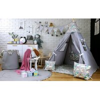 Jako doplněk nabízíme dvoubarevnou girlandu se sedmi praporky, která celý komplet Teepee (Týpí) stanu přivede k dokonalosti a oživí Váš interiér. Girlanda je vyrobená z kvalitní bavlny, která je velmi příjemná na dotek. Praporky neobsahují výplň.