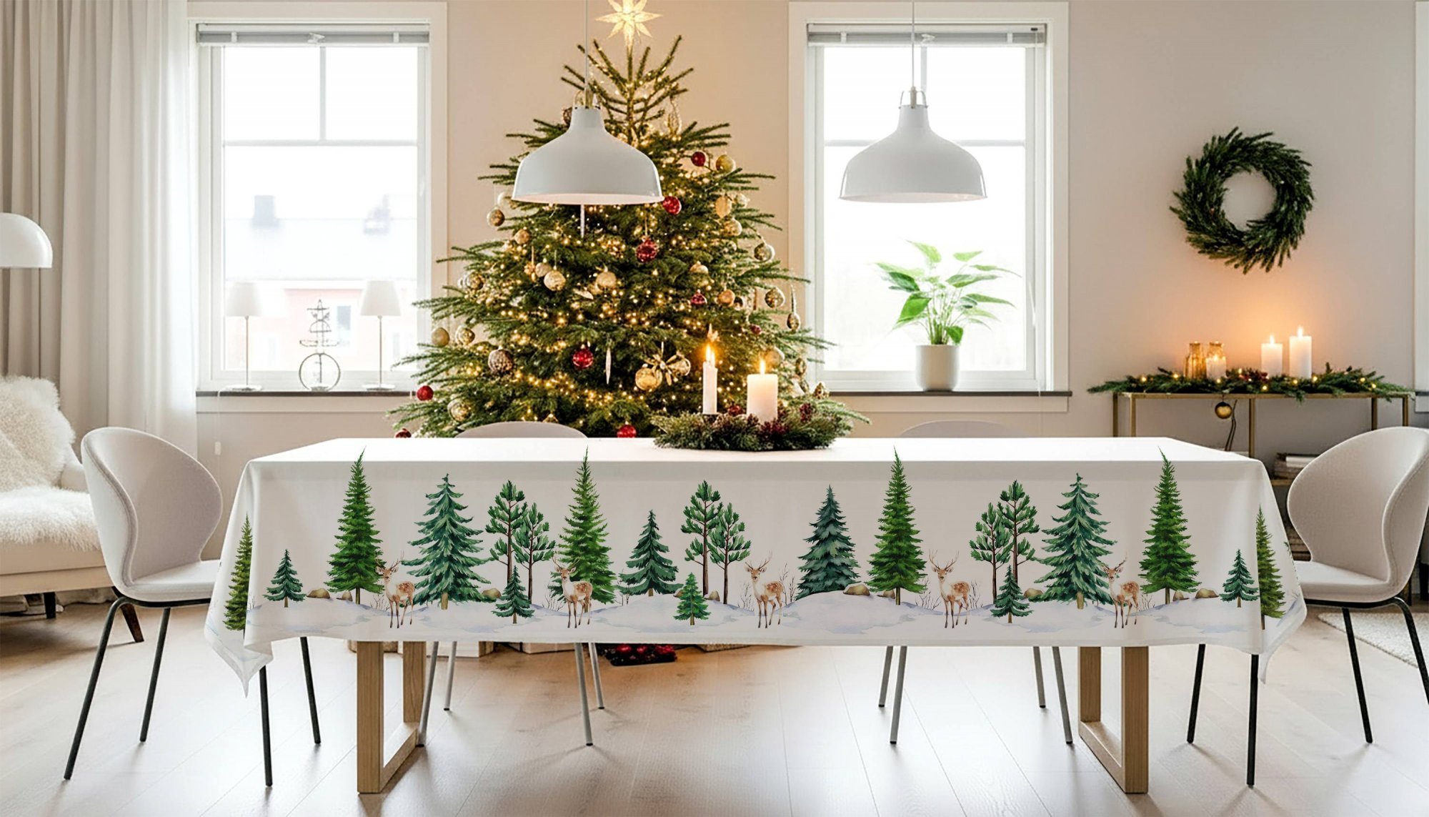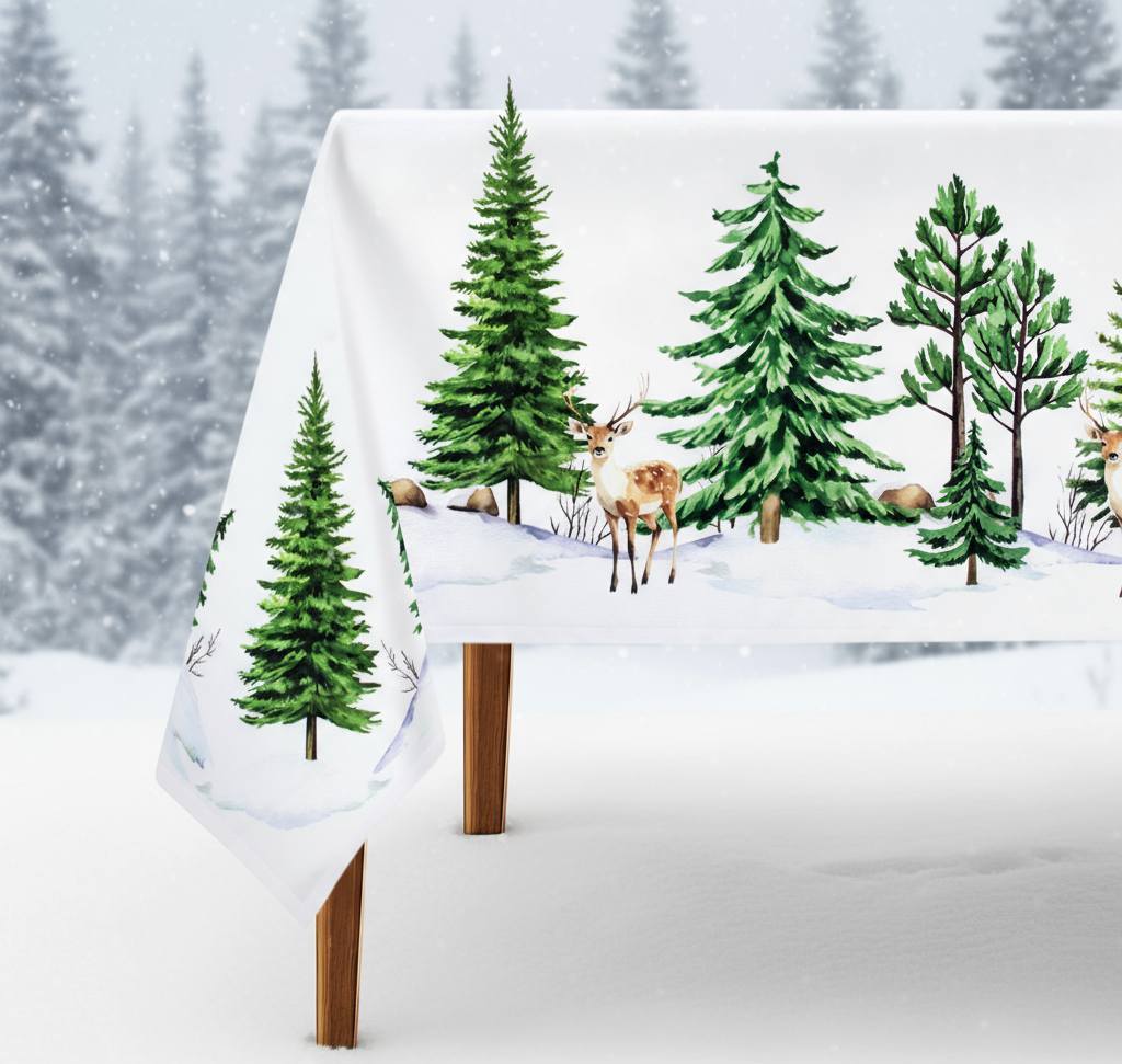Dekorativní ubrus se zimním motivem bude perfektním doplňkem vašeho svátečního stolování a vylepší charakter vašeho interiéru. Tento produkt byl pečlivě navržen tak, aby přinesl radost a eleganci ke každému jídlu nebo setkání s blízkými. Ubrus je perfektní jako sváteční dekorace a zdůrazní tento magický čas skutečně elegantním způsobem.