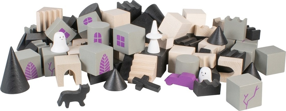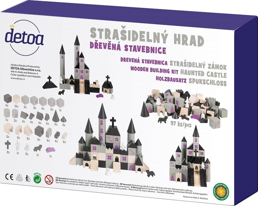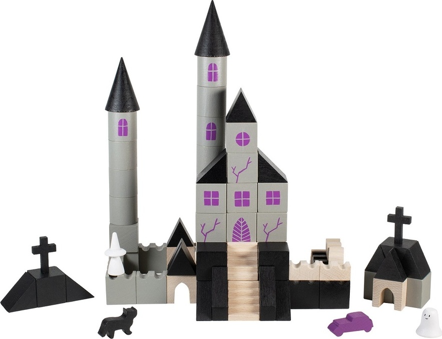 Postavte si vlastní strašidelný hrad plný temných věží, duchů a tajemných zákoutí! Nechybí bílá paní a černá kočka, které hlídají každý kout. S 97 dílky z kvalitního dřeva si můžete hrad sestavit přesně podle svých představ. Stavění rozvíjí logické myšlení, trpělivost a soustředění a zároveň umožňuje dětem zapojit fantazii při vymýšlení vlastních příběhů o strašidlech a tajemných postavách. Hra je zábavná pro všechny děti, které si chtějí užít dobrodružství v tajemném světě strašidelného hradu.