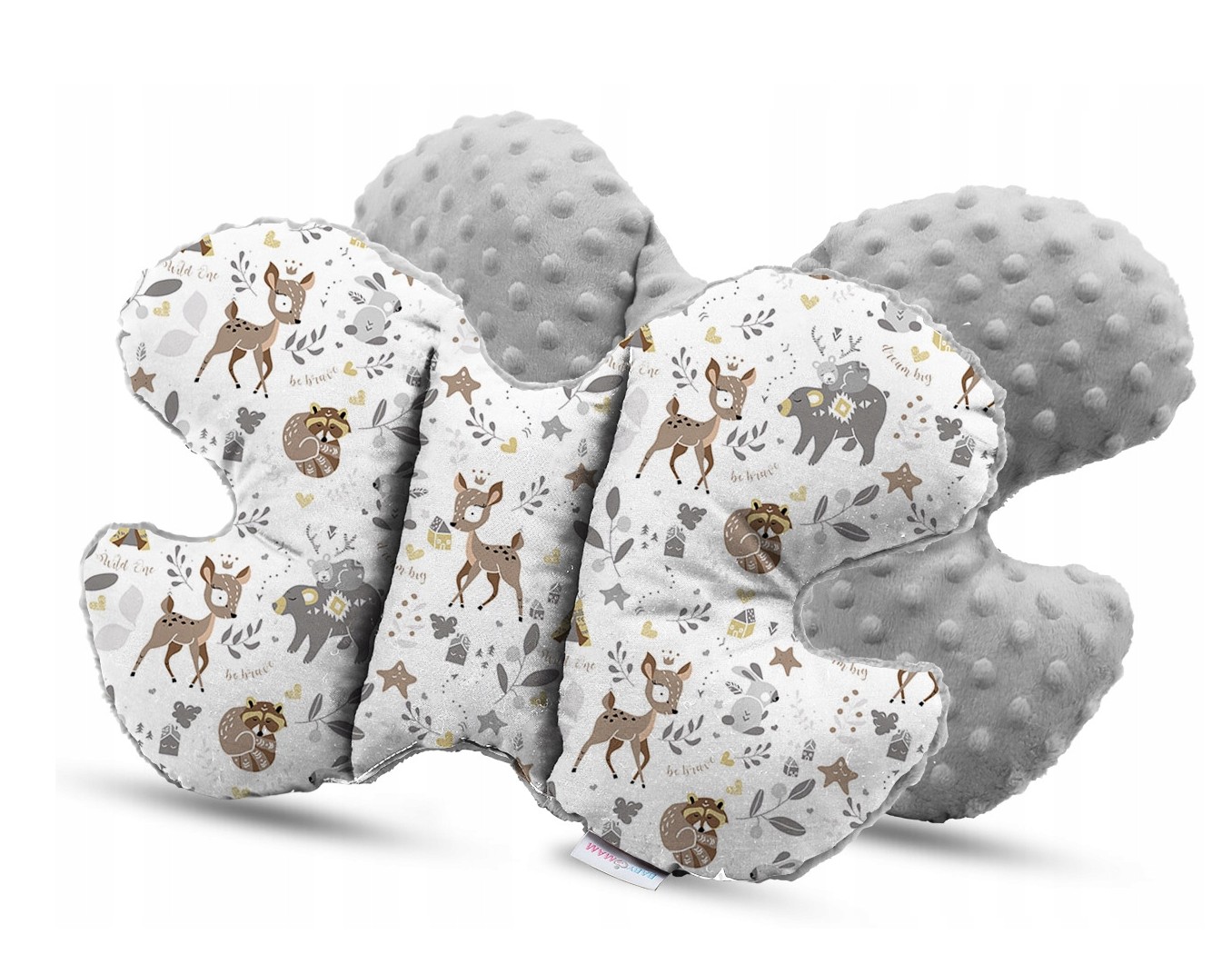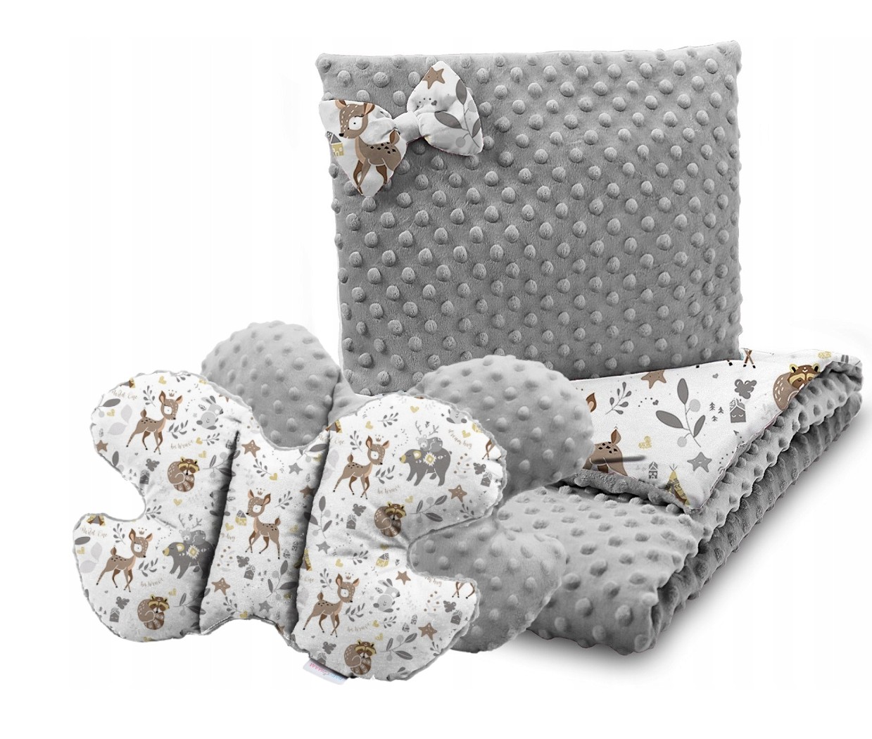 Dětská deka do kočárku s polštářkem a motýlkem - BABYMAM PREMIUM set 3v1 - Srneček a přátelé s šedou minky
