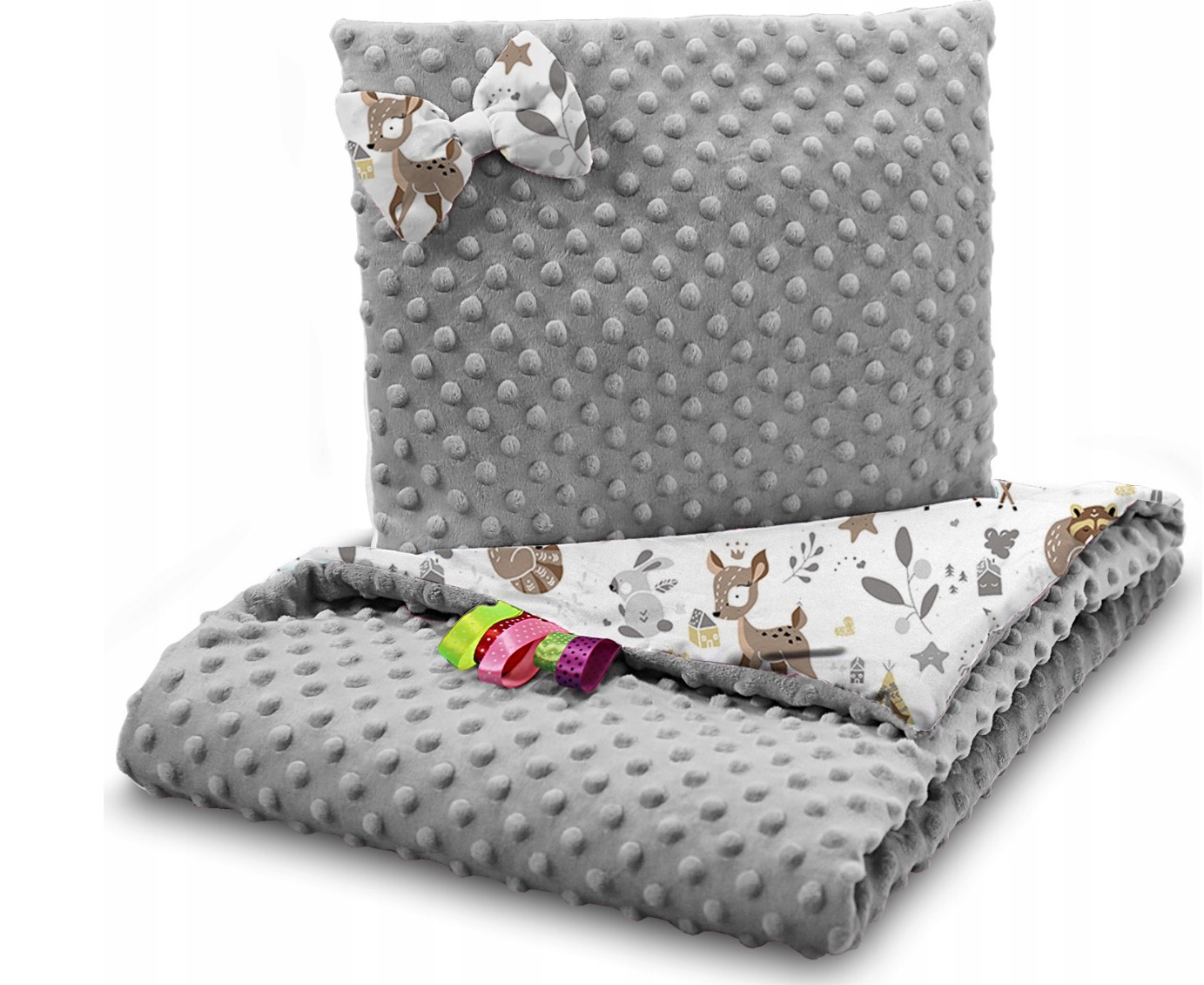 Nádherná oboustranná dětská deka s polštářkem a motýlkem, které si Vaše dítě zamiluje. Sadu lze využít nejen do kočárku, ale i do kolébky, postýlky, autosedačky nebo při hraní na zemi. Deka je oboustranná, jednu stranu tvoří měkká, na dotek velmi příjemná minky, druhou stranu 100% bavlněná látka s originálním dětským potiskem, který barevně ladí s minky. Minky oceníte v chladnějších dnech, kdy Vaše dítě zahřeje. A bavlněnou stranu deky zase v létě, kdy jej ochladí. Součástí sady je kromě dětské deky a polštáře i oboustranný stabilizační polštářek ve tvaru motýlka 35x24 cm, materiál bavlna/minky. K čemu slouží? Tento unikátní tvar polštáře ve tvaru motýla je navržen tak, aby eliminoval případné otřesy dětské hlavičky při jízdě v kočárku nebo autosedačce. Ideální doplněk na cesty, zajišťující pohodlí a klidný spánek Vašeho dítěte. Doporučujeme používat všem, kteří dbají na bezpečnost svých dětí a jejich pohodu při cestování. Určeno pro děti do 24 měsíců věku. Veškerý použitý materiál je velmi příjemný a jemný na omak.