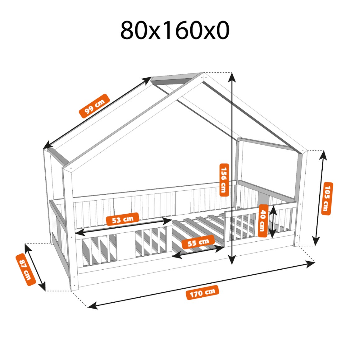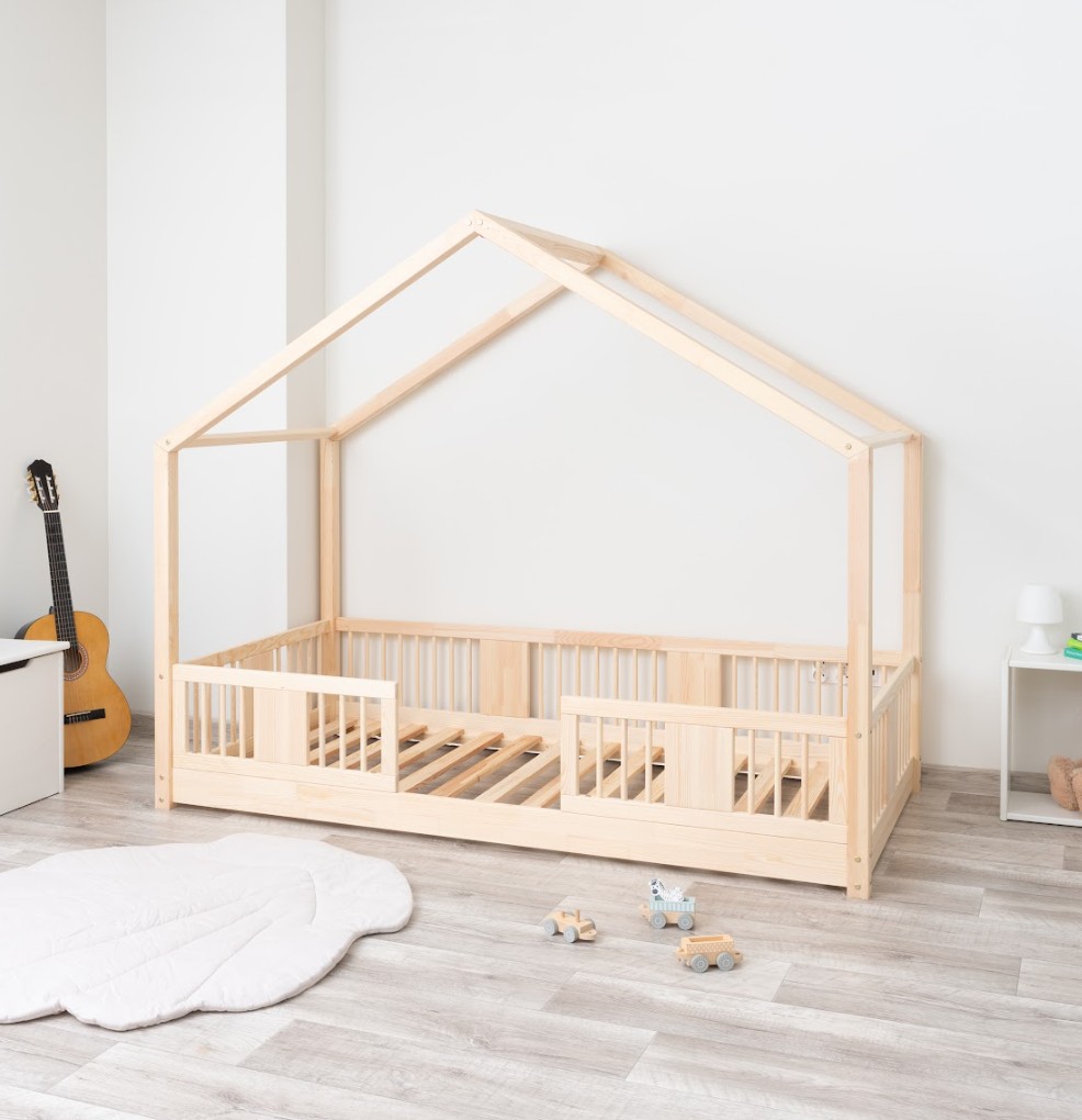 Dětská domečková Montessori postel z masivu borovice LUNA S - 160x80 cm
