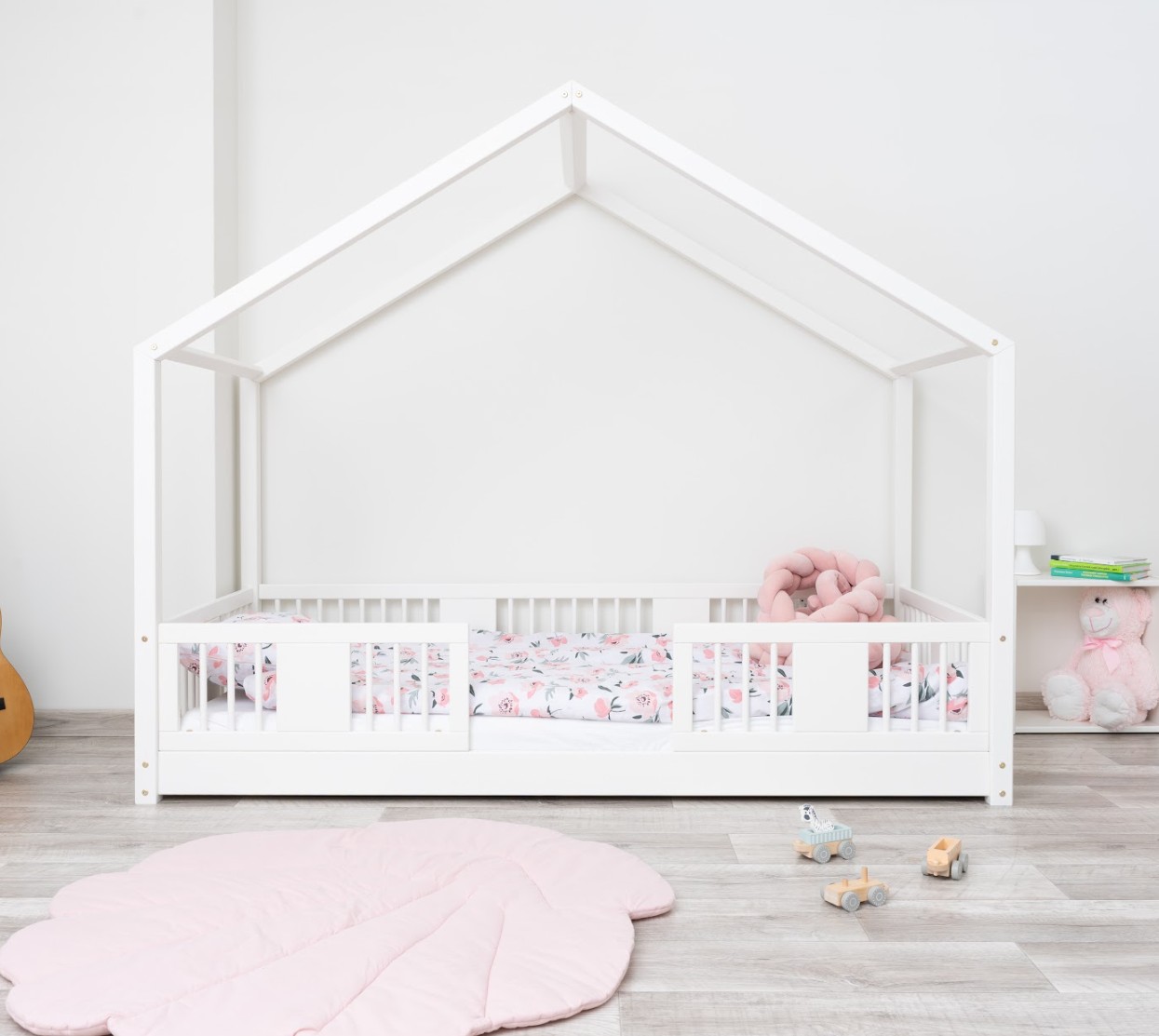 Montessori postel LUNA S je okouzlující jednolůžko ve tvaru domečku, které kombinuje funkčnost, bezpečnost a nadčasovou estetiku. Postaveno přímo na podlahu vytváří bezpečný prostor, ideální jako první dětská postýlka. Díky nízkému profilu může vaše dítě samostatně vlézt a vstávat z postele, což podporuje jeho vývoj a nezávislost od útlého věku. Princip Montessori klade důraz na volnost dítěte, což tato postel nabízí. Charakteristickým rysem modelu LUNA jsou kulaté, soustružené příčky, které dodávají posteli jemný, příjemný vzhled a nenápadně ji odlišují od ostatních modelů. Jejich měkký tvar vnáší do interiéru harmonii a lehkost a zároveň poskytuje dodatečné bezpečí během spánku. Postel LUNA S je vyrobena výhradně z přírodního borovicového dřeva – odolného, přírodního a zcela bezpečného pro děti. Každý kus má zaoblené hrany pro pohodlné používání. Pro povrchovou úpravu byly použity ekologické barvy na vodní bázi, které splňují bezpečnostní normy. Postel nabízíme také ve verzi bez povrchových úprav - nelakované dřevo. Díky tomu ji lze snadno přizpůsobit - její vzhled můžete upravit mořením, lakováním nebo malováním dle vlastního uvážení. Unikátní dřevěný baldachýn vytváří útulnou, pohádkovou atmosféru. Stačí přidat světla nebo lehkou látku a proměnit obyčejný pokoj v kouzelný prostor. Tato postel není jen pro spaní, ale také pro vytváření vzpomínek.