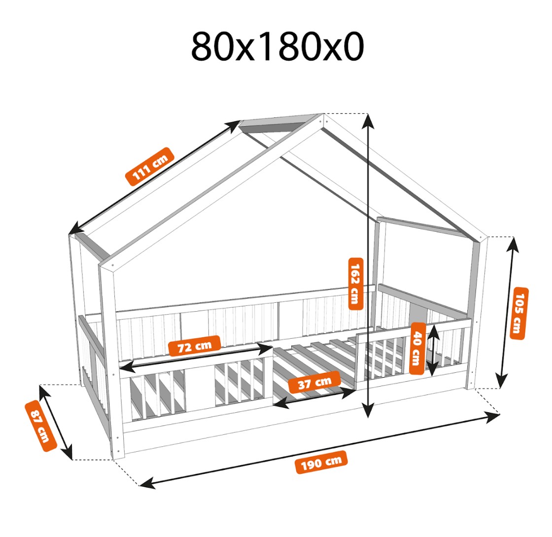 Dětská domečková Montessori postel z masivu borovice LUNA S - 180x80 cm