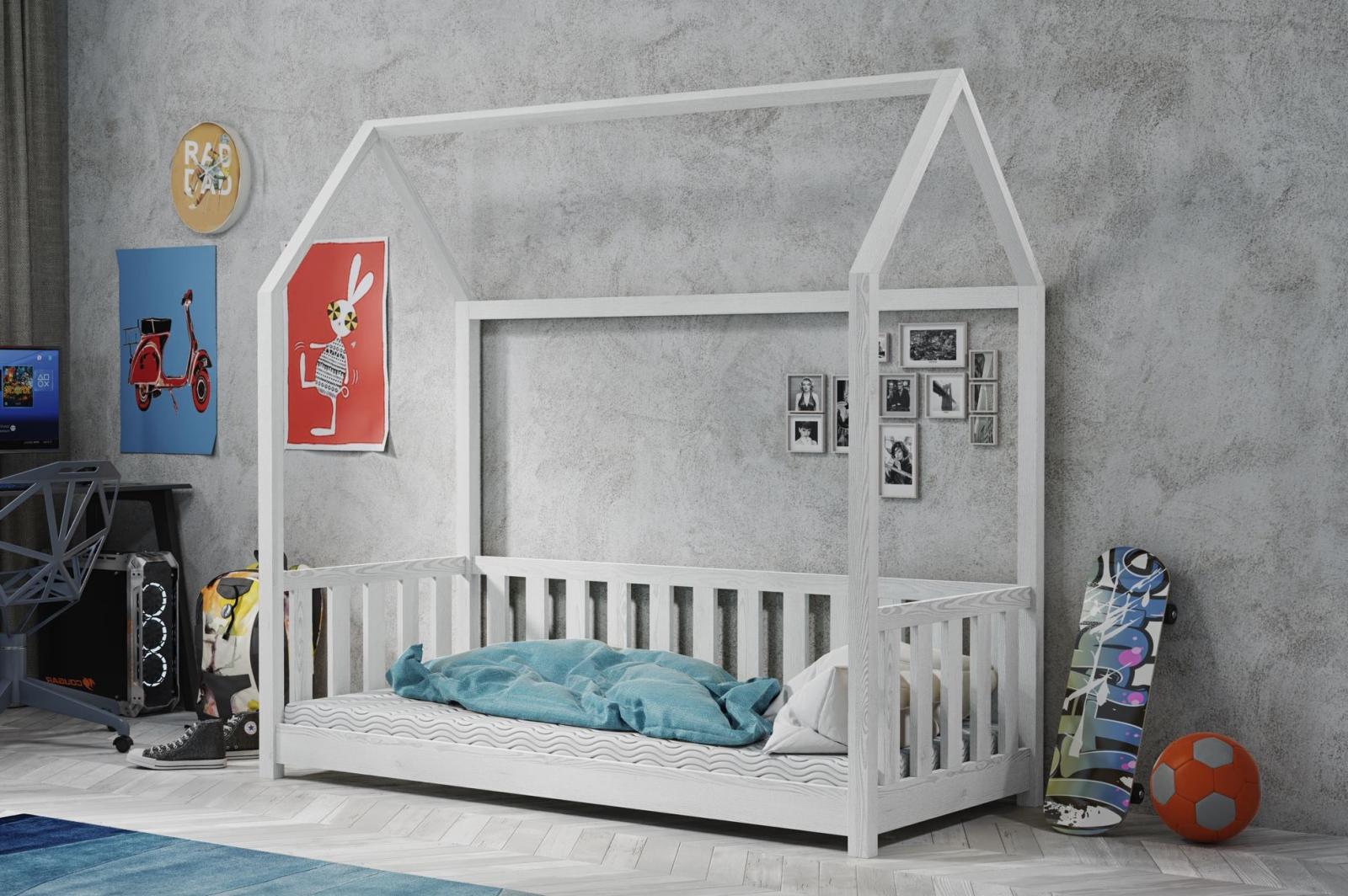 Dětská domečková Montessori postel z masivu borovice PAVEL - 190x90 cm - BÍLÁ