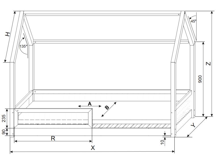 - Výška ložné plochy: 17 cm (při použití matrace o výšce 10 cm)