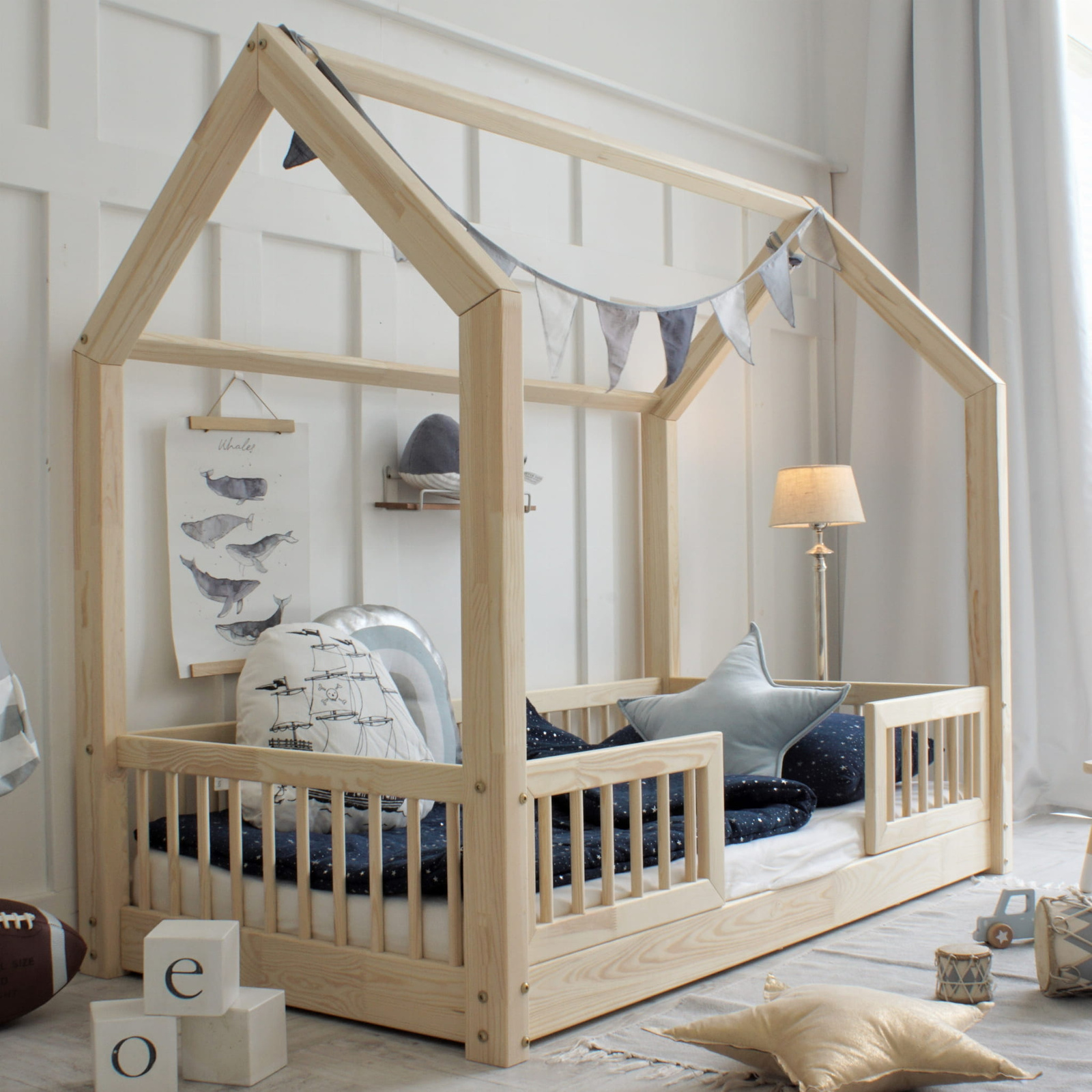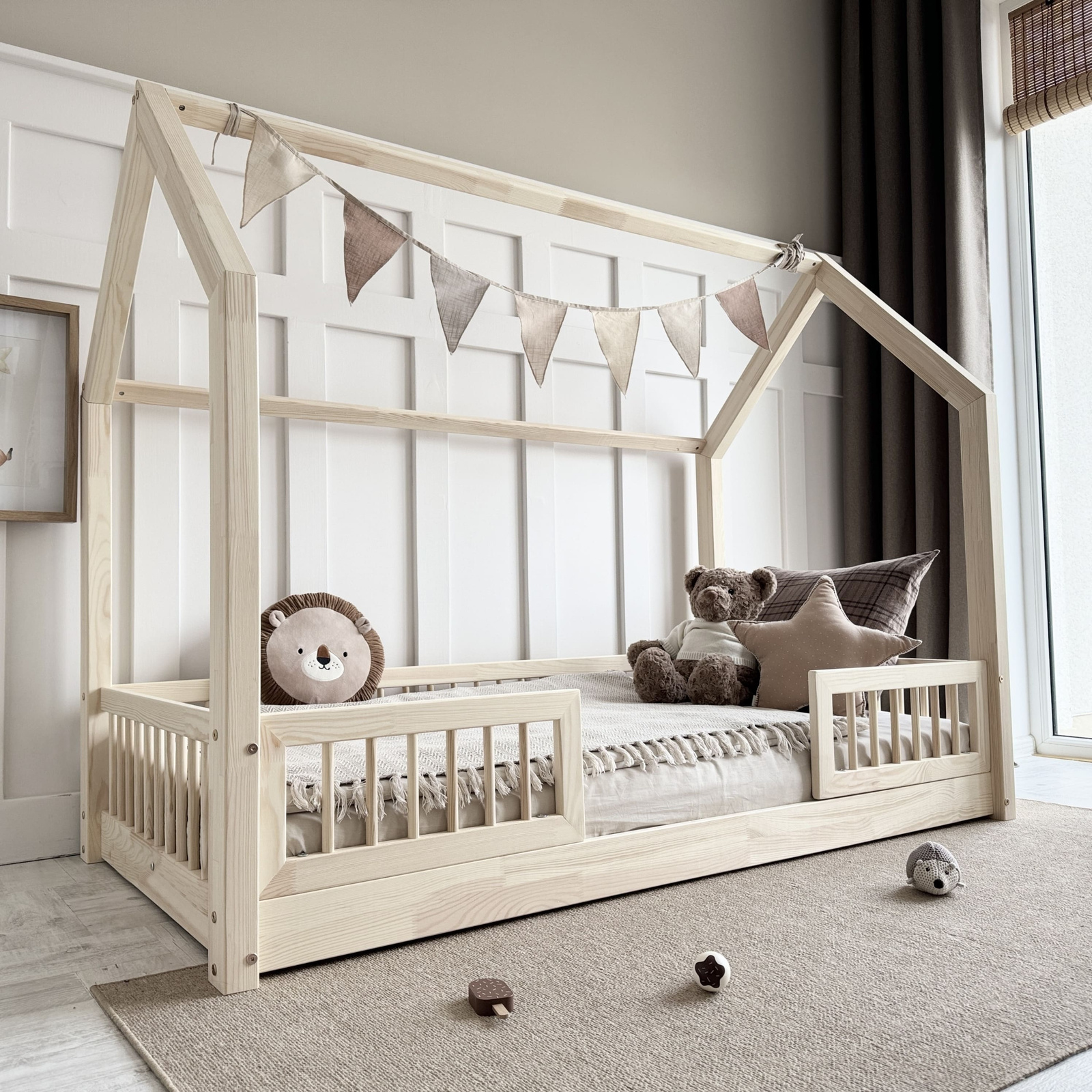 - Dětská domečková postel z cinkovaného borovicového dřeva