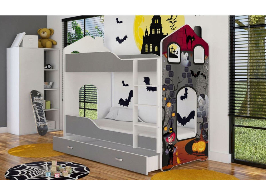 Dětská domečková patrová postel Dominik Y - 160x80 cm - ČARODĚJKA