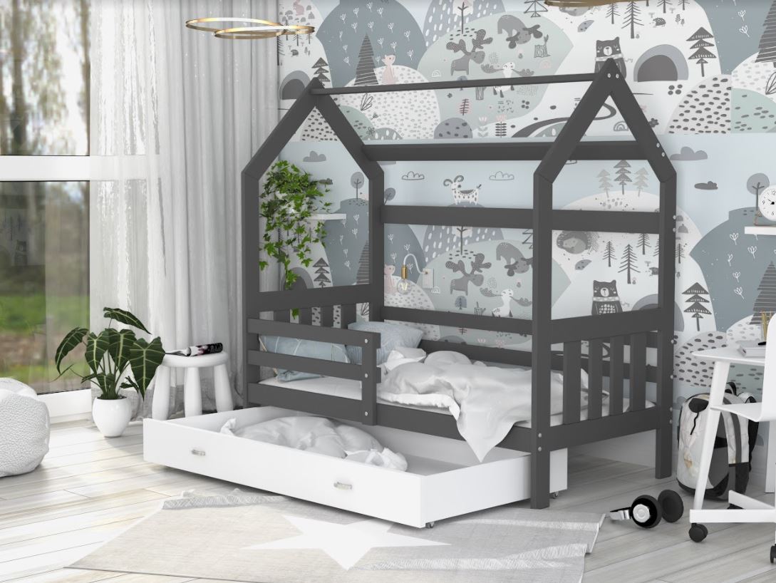 Dětská domečková postel DOMEK P - 160x80 cm - šedá