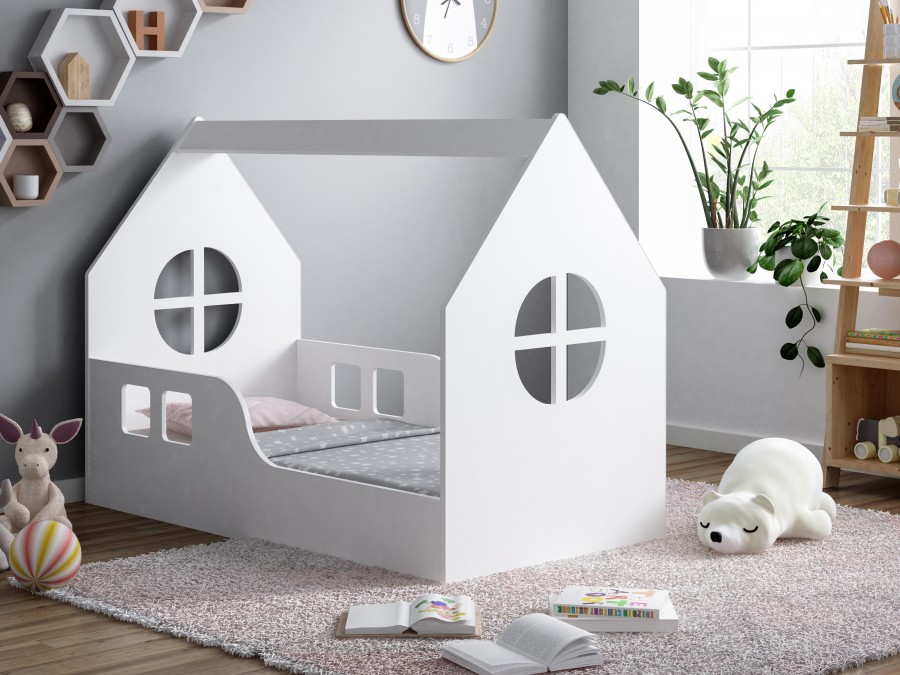 Dětská domečková postel z kolekce HAPPY HOUSE Vás na první pohled zaujme unikátním tvarem a moderním designem, který se hodí do každého dětského pokoje. Postele jsou vhodné jak pro děvčata, tak i chlapce a díky své univerzálnosti se hodí do každého dětského pokoje, kde se stanou hlavní dominantou interiéru.