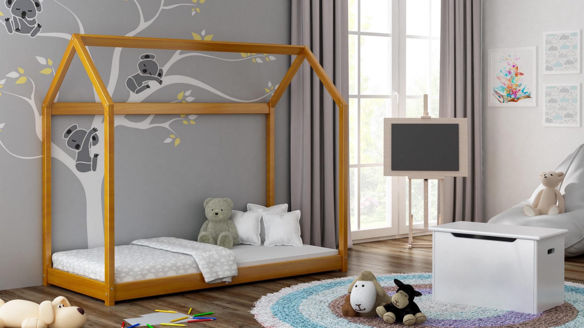 Hledáte designově moderní domečkovou postel pro vaše dítě? Domečkové postele se stávají současným trendem. Jejich konstrukce je pevná a odolná. Dětská domečková postel SAM dodá do dětského pokoje moderní design a zároveň jedinečné místo na hraní pro vaše dítě. Postel je vyrobena z kvalitního borovicového dřeva. Části postele jsou zaoblené, tím pádem minimalizují případné poranění dítěte. Materiál i celá postel splňují všechny bezpečnostní normy. Dětská postel je dostupná v mnoha barevných variantách. Vy tak budete mít možnost sladit postel skvěle s dětským pokojem a přivést interiér k dokonalosti. Vaše děti si tuto postel zamilují!
