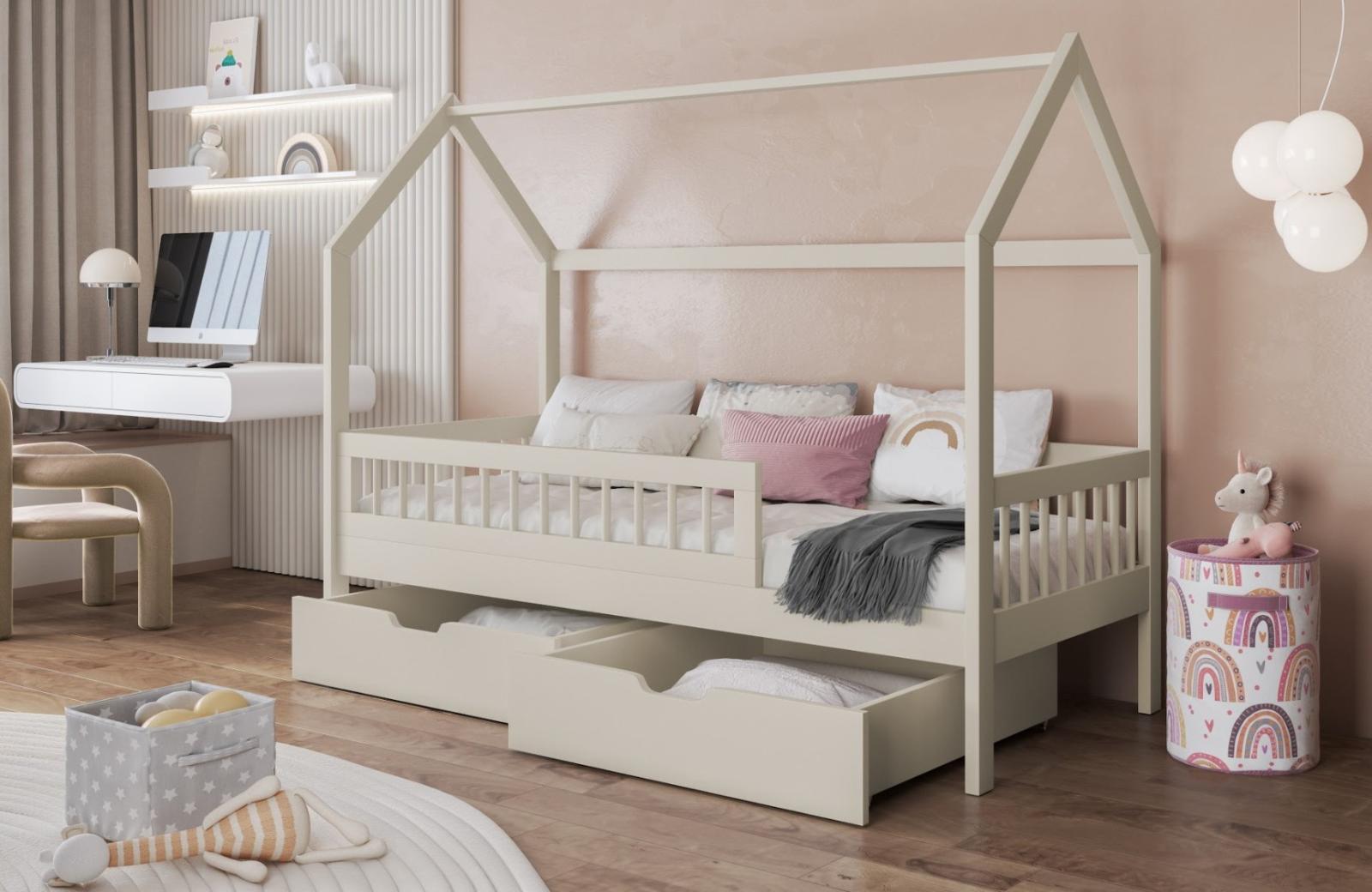 Dětská domečková postel z masivu borovice se šuplíky GAJA - 140x70 cm - kašmírová