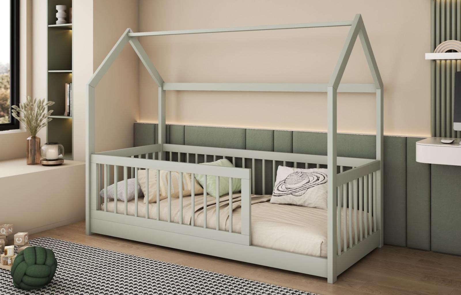 Dětská domečková postel z masivu borovice GRÉTA - 200x90 cm - olivově zelená