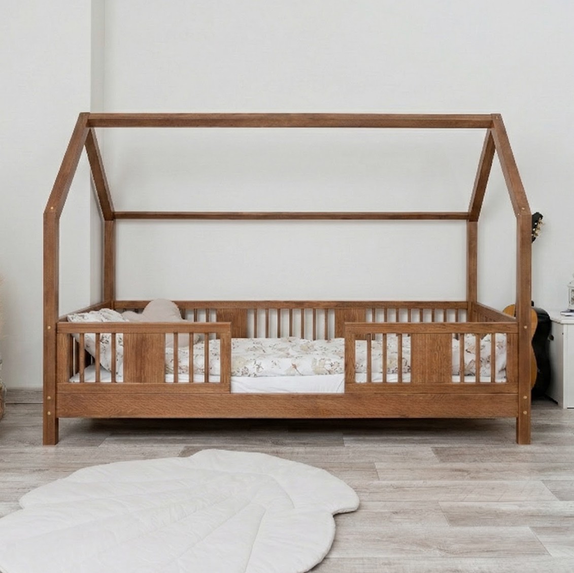 Model LUNA L 10 dokonale odpovídá filozofii Montessori – jeho nízká, otevřená konstrukce podporuje samostatnost dítěte a přírodní materiály vytvářejí zdravé prostředí pro spánek. Blízkost podlahy zvyšuje pocit bezpečí, zatímco zaoblené příčky a absence ostrých hran eliminují riziko zranění. Děti mohou samostatně vlézt do postele a z ní vylézat, a tak se každý den učí zodpovědnosti a sebevědomí. LUNA L 10 není jen kus nábytku, ale plnohodnotný prvek každodenního života dítěte – místo pro spánek, hraní a relaxaci v jednom. Postel vyniká nejen svým designem, ale i důrazem na detail, což z ní činí ideální volbu pro moderní rodiče.