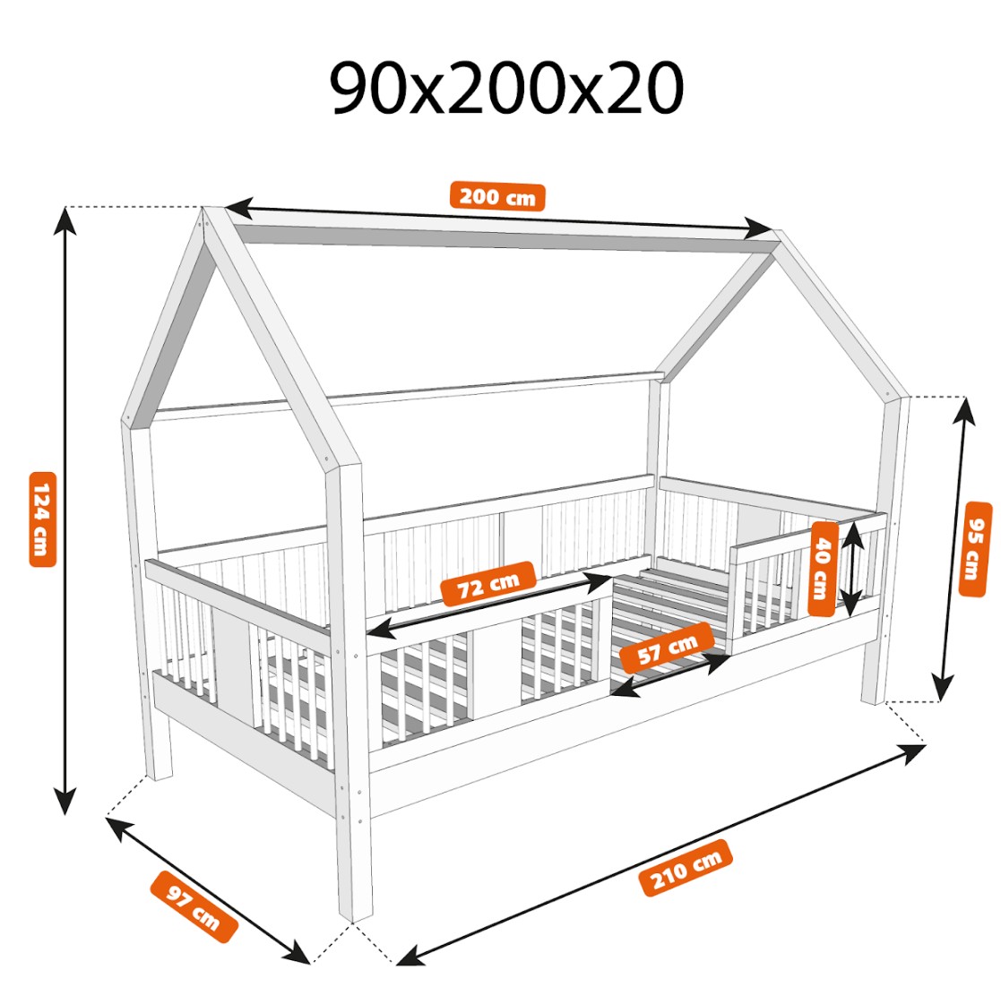 Dětská domečková postel z masivu borovice LUNA L 20 - 200x90 cm