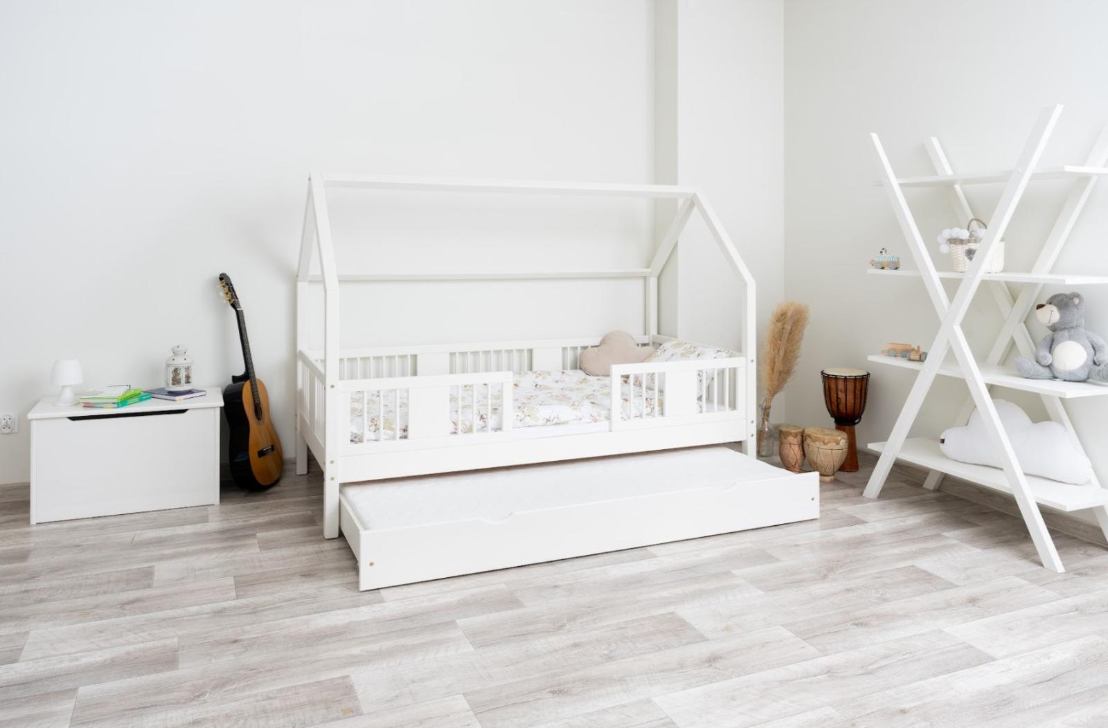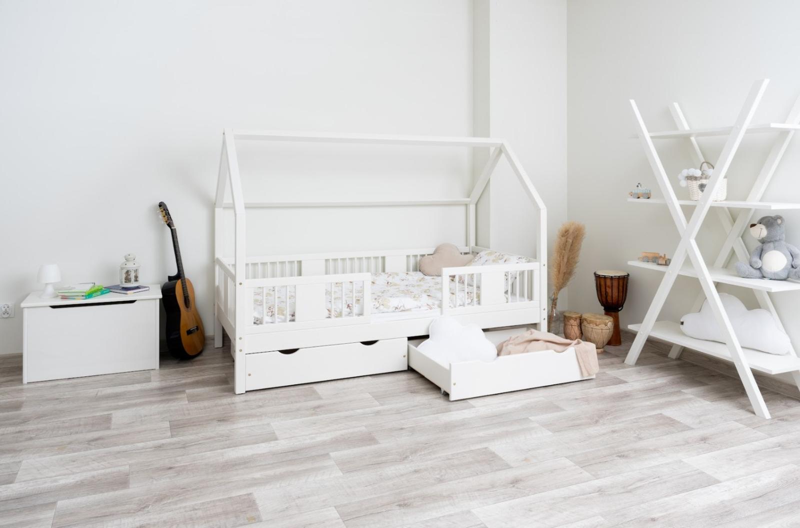 Tato dětská postel je vytvořena tak, aby ušetřila prostor v dětském pokoji. K posteli lze také dokoupit praktický a prostorný šuplík z masivu v několika variantách:
