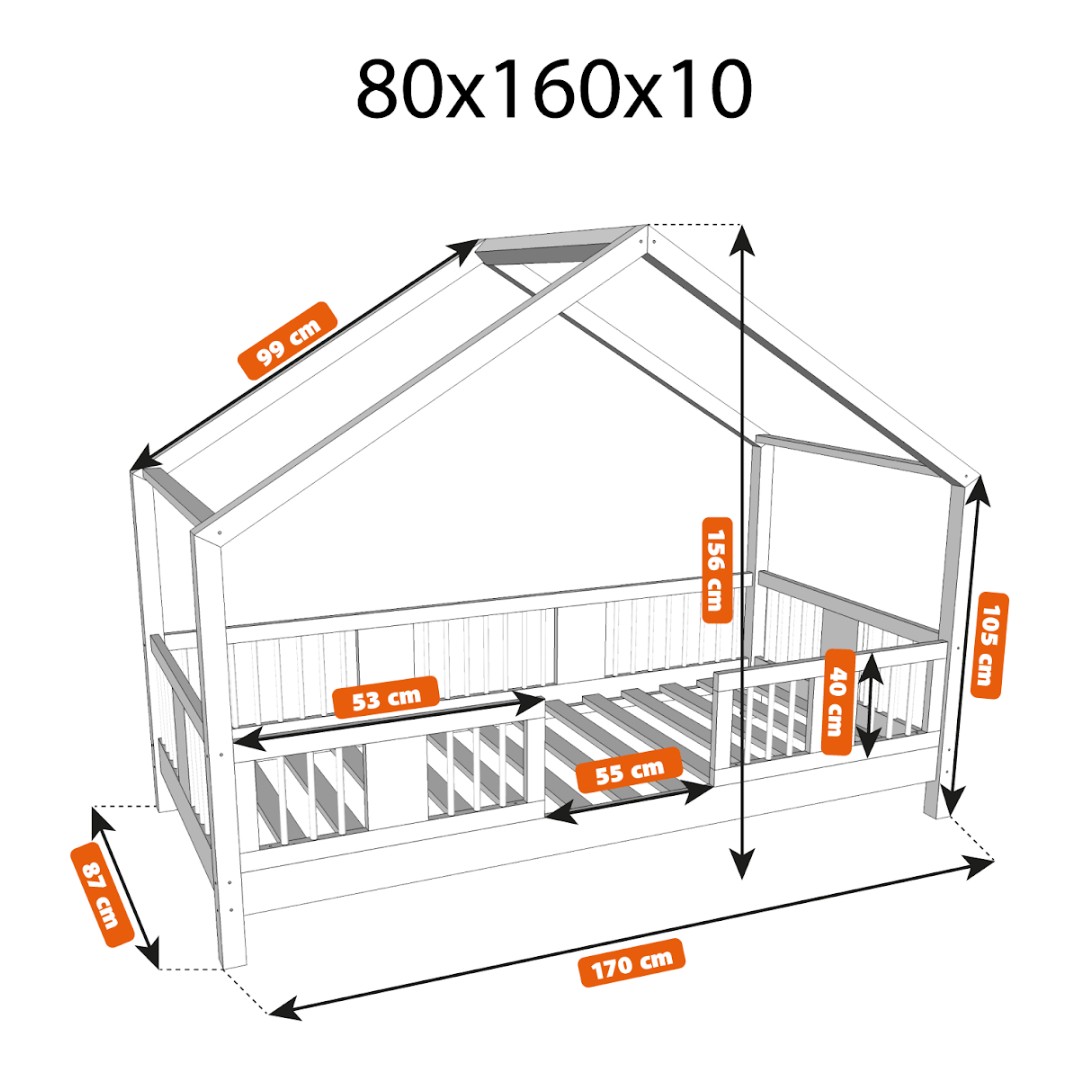 Dětská domečková postel z masivu borovice LUNA S 10 - 160x80 cm