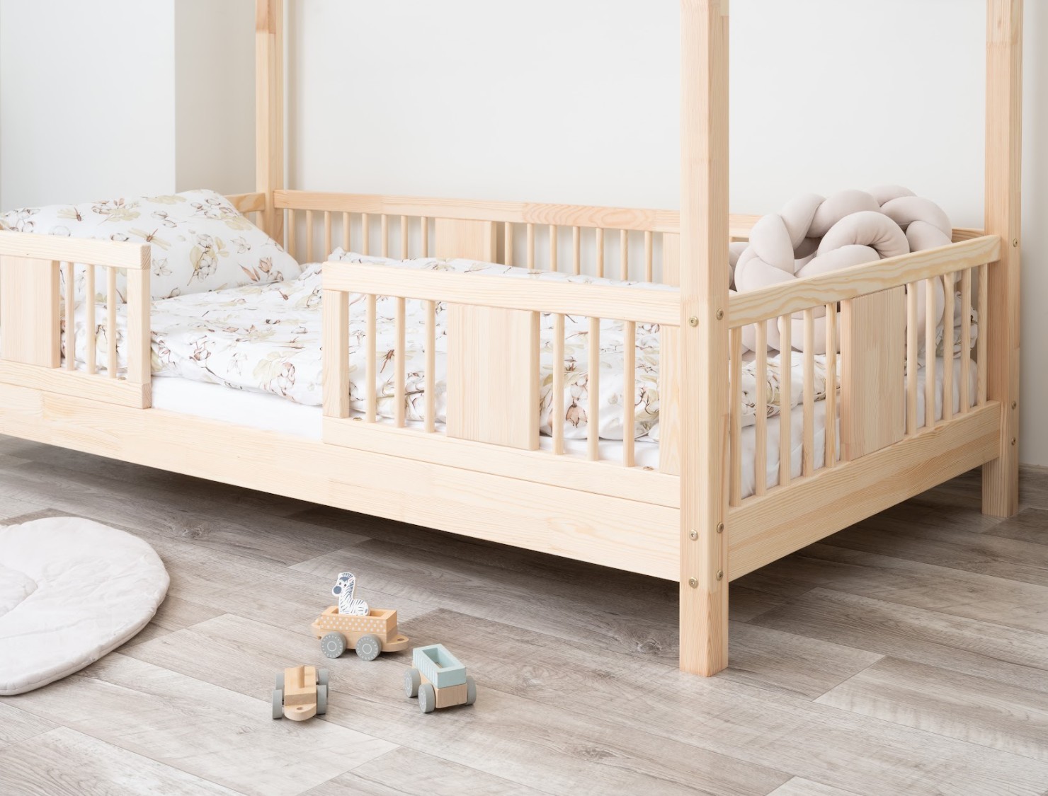 LUNA S 10 je unikátní jednolůžko pro děti, které kombinuje skandinávskou jednoduchost, přírodní krásu dřeva a pohádkový charakter malého domu. O 10 cm vyšší rám usnadňuje udržování čistoty pod postelí a zároveň zachovává nenápadný design – bezpečný i pro nejmenší. Je to perfektní volba pro rodiče, kteří hledají kombinaci estetiky, funkčnosti a pohodlí. Postel LUNA S 10 zaujme svými jemnými, harmonickými liniemi a detaily inspirovanými přírodou. Rám z přírodního borovicového dřeva vytváří pevnou a stabilní konstrukci, kterou zdůrazňují zaoblené, soustružené příčky. Jejich měkký tvar evokuje klasický dětský nábytek, ale s moderním, lehkým nádechem. Povrchová úprava je provedena ekologickými barvami na vodní bázi, které splňují evropskou normu EN 71-3 – bez zápachu, toxinů a škodlivých látek. Díky tomu je postel LUNA S 10 ideální do pokojů alergiků nebo kojenců. Postel nabízíme také ve verzi bez povrchových úprav - nelakované dřevo. Díky tomu ji lze snadno přizpůsobit - její vzhled můžete upravit mořením, lakováním nebo malováním dle vlastního uvážení. Dřevěný baldachýn dotváří design a dodává posteli útulný vzhled. Její minimalistický design umožňuje snadnou dekoraci – stačí jen trocha fantazie a promění se v snový koutek pro spaní a hraní. Jemně zaoblené hrany a pečlivě leštěný povrch činí postel zcela bezpečnou a příjemnou na dotek. Nohy vysoké 10 cm jí dodávají vizuální lehkost, díky čemuž je esteticky příjemným doplňkem každého interiéru – ať už ve světlém pokoji ve skandinávském stylu nebo v útulném prostoru zařízeném v teplých dřevěných tónech.