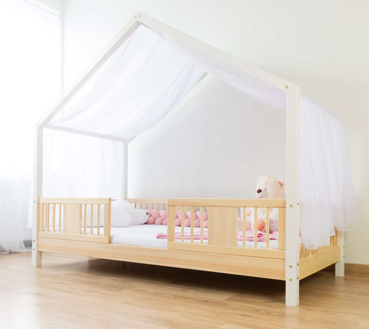 LUNA S 10 je unikátní jednolůžko pro děti, které kombinuje skandinávskou jednoduchost, přírodní krásu dřeva a pohádkový charakter malého domu. O 10 cm vyšší rám usnadňuje udržování čistoty pod postelí a zároveň zachovává nenápadný design – bezpečný i pro nejmenší. Je to perfektní volba pro rodiče, kteří hledají kombinaci estetiky, funkčnosti a pohodlí. Postel LUNA S 10 zaujme svými jemnými, harmonickými liniemi a detaily inspirovanými přírodou. Rám z přírodního borovicového dřeva vytváří pevnou a stabilní konstrukci, kterou zdůrazňují zaoblené, soustružené příčky. Jejich měkký tvar evokuje klasický dětský nábytek, ale s moderním, lehkým nádechem. Povrchová úprava je provedena ekologickými barvami na vodní bázi, které splňují evropskou normu EN 71-3 – bez zápachu, toxinů a škodlivých látek. Díky tomu je postel LUNA S 10 ideální do pokojů alergiků nebo kojenců. Postel nabízíme také ve verzi bez povrchových úprav - nelakované dřevo. Díky tomu ji lze snadno přizpůsobit - její vzhled můžete upravit mořením, lakováním nebo malováním dle vlastního uvážení. Dřevěný baldachýn dotváří design a dodává posteli útulný vzhled. Její minimalistický design umožňuje snadnou dekoraci – stačí jen trocha fantazie a promění se v snový koutek pro spaní a hraní. Jemně zaoblené hrany a pečlivě leštěný povrch činí postel zcela bezpečnou a příjemnou na dotek. Nohy vysoké 10 cm jí dodávají vizuální lehkost, díky čemuž je esteticky příjemným doplňkem každého interiéru – ať už ve světlém pokoji ve skandinávském stylu nebo v útulném prostoru zařízeném v teplých dřevěných tónech.