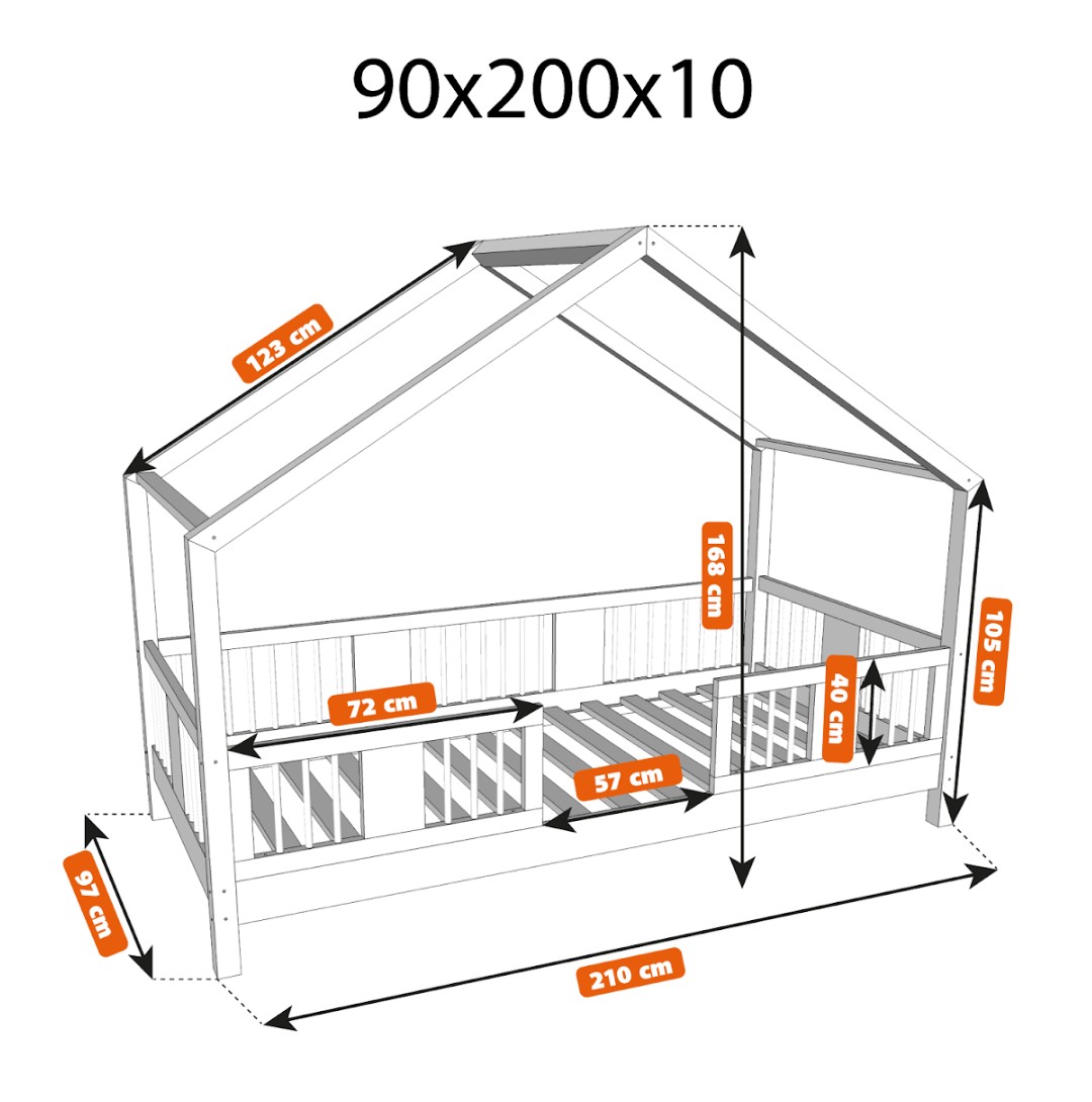 Dětská domečková postel z masivu borovice LUNA S 10 - 200x90 cm