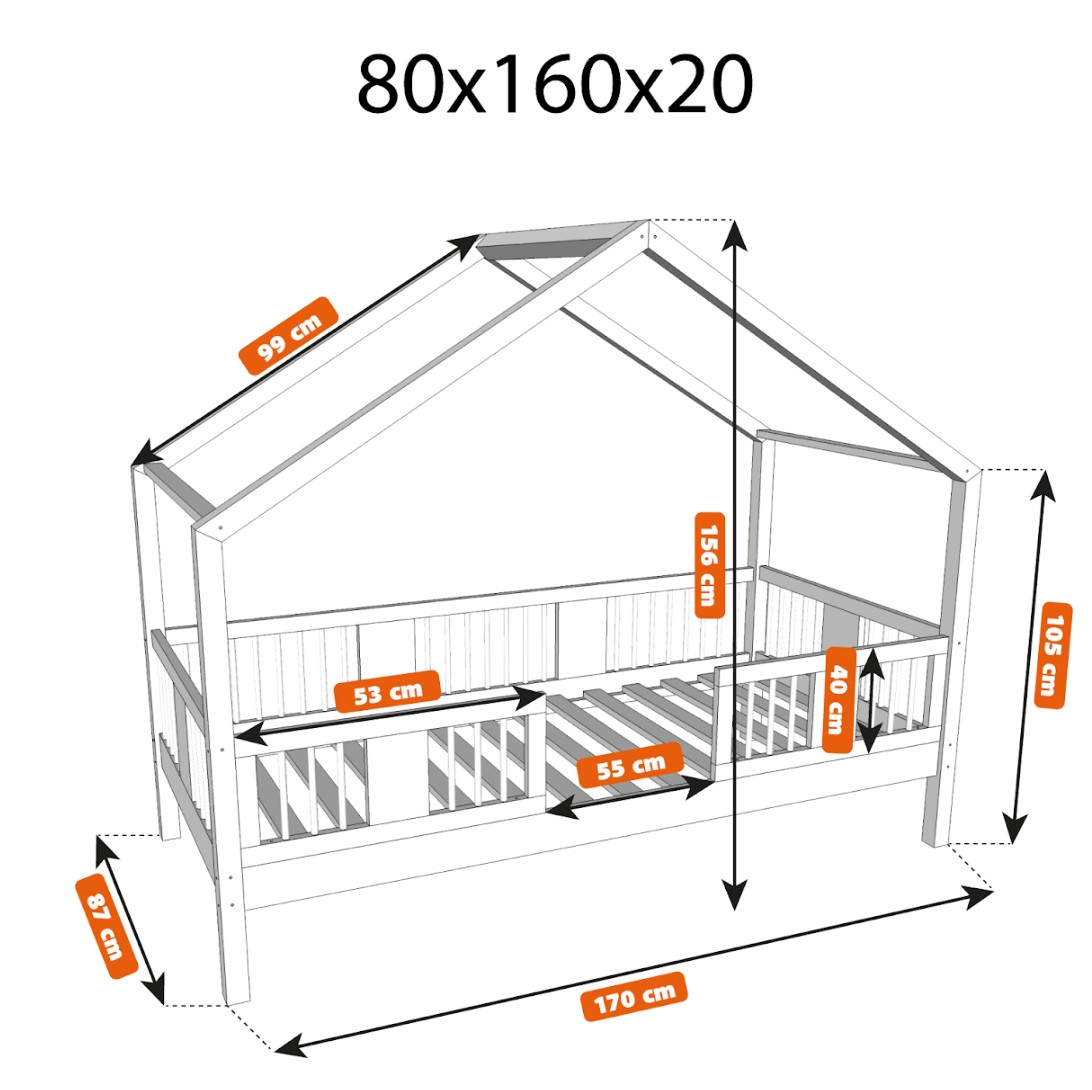 Dětská domečková postel z masivu borovice LUNA S 20 - 160x80 cm