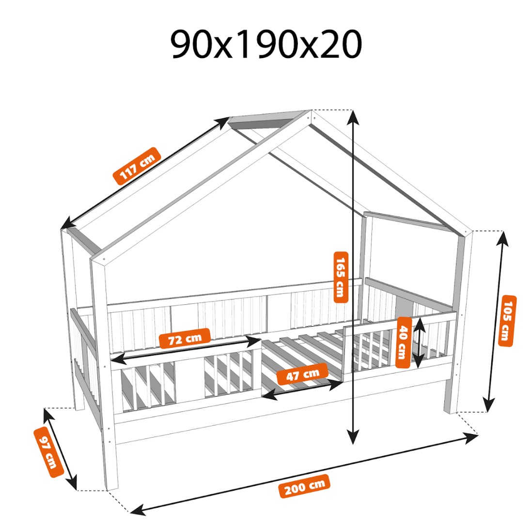 Dětská domečková postel z masivu borovice LUNA S 20 - 190x90 cm