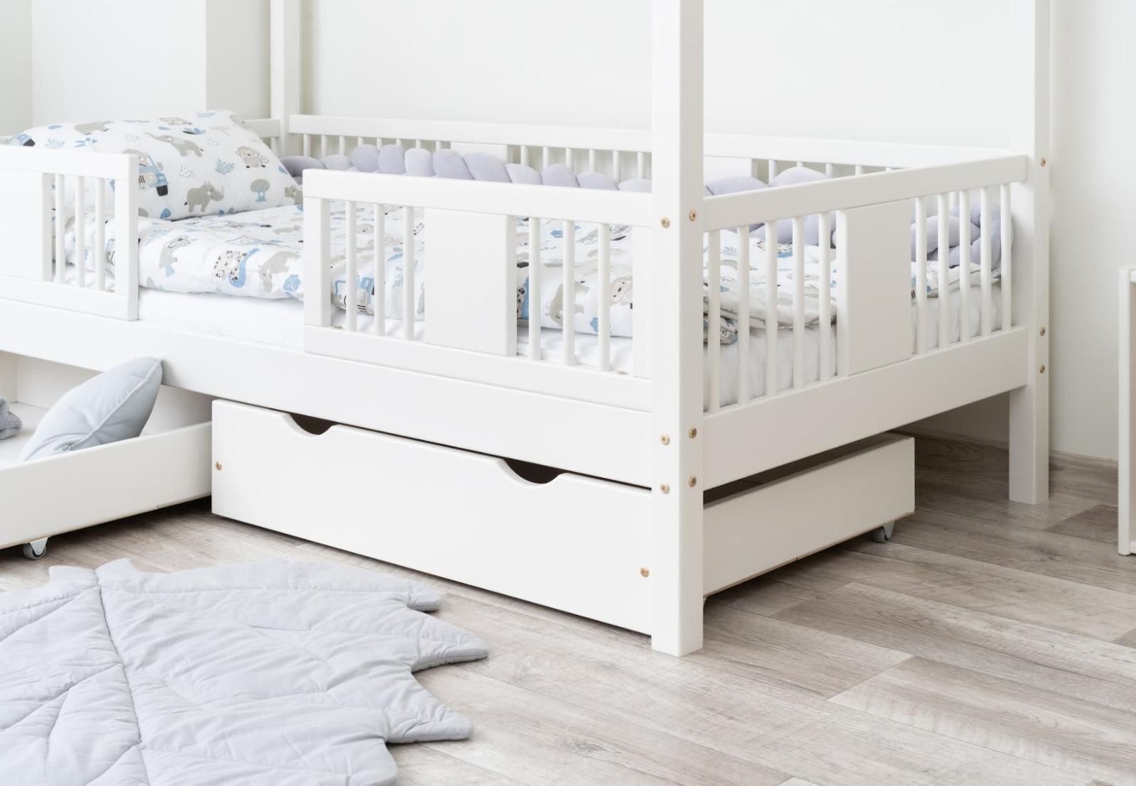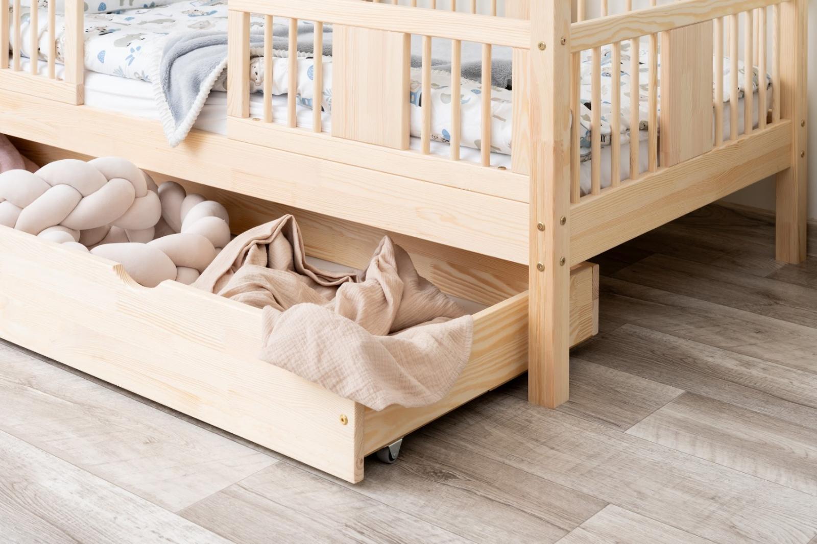 Tato dětská postel je vytvořena tak, aby ušetřila prostor v dětském pokoji. K posteli lze také dokoupit praktický a prostorný šuplík z masivu v několika variantách: