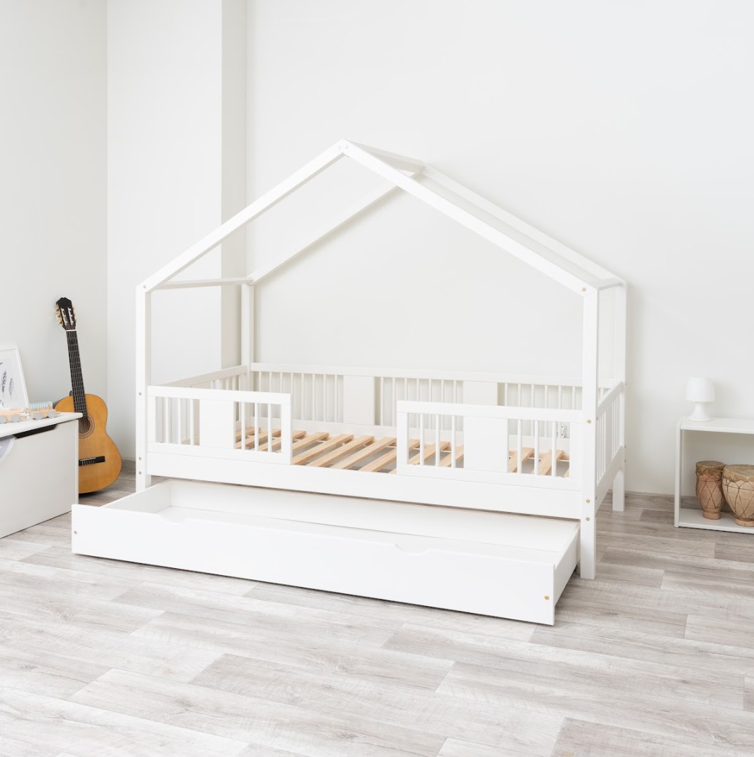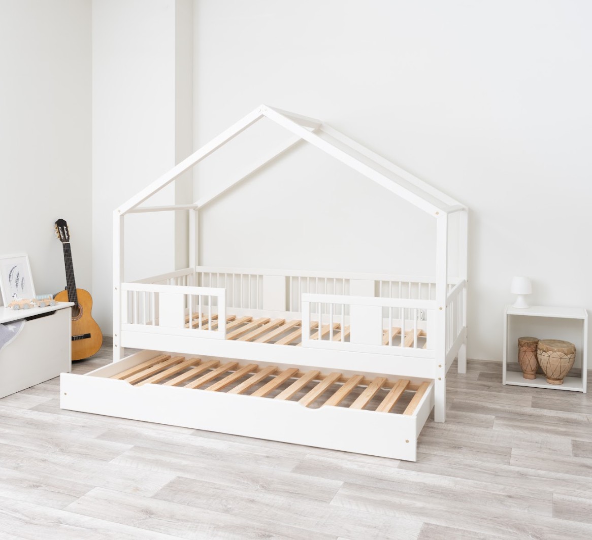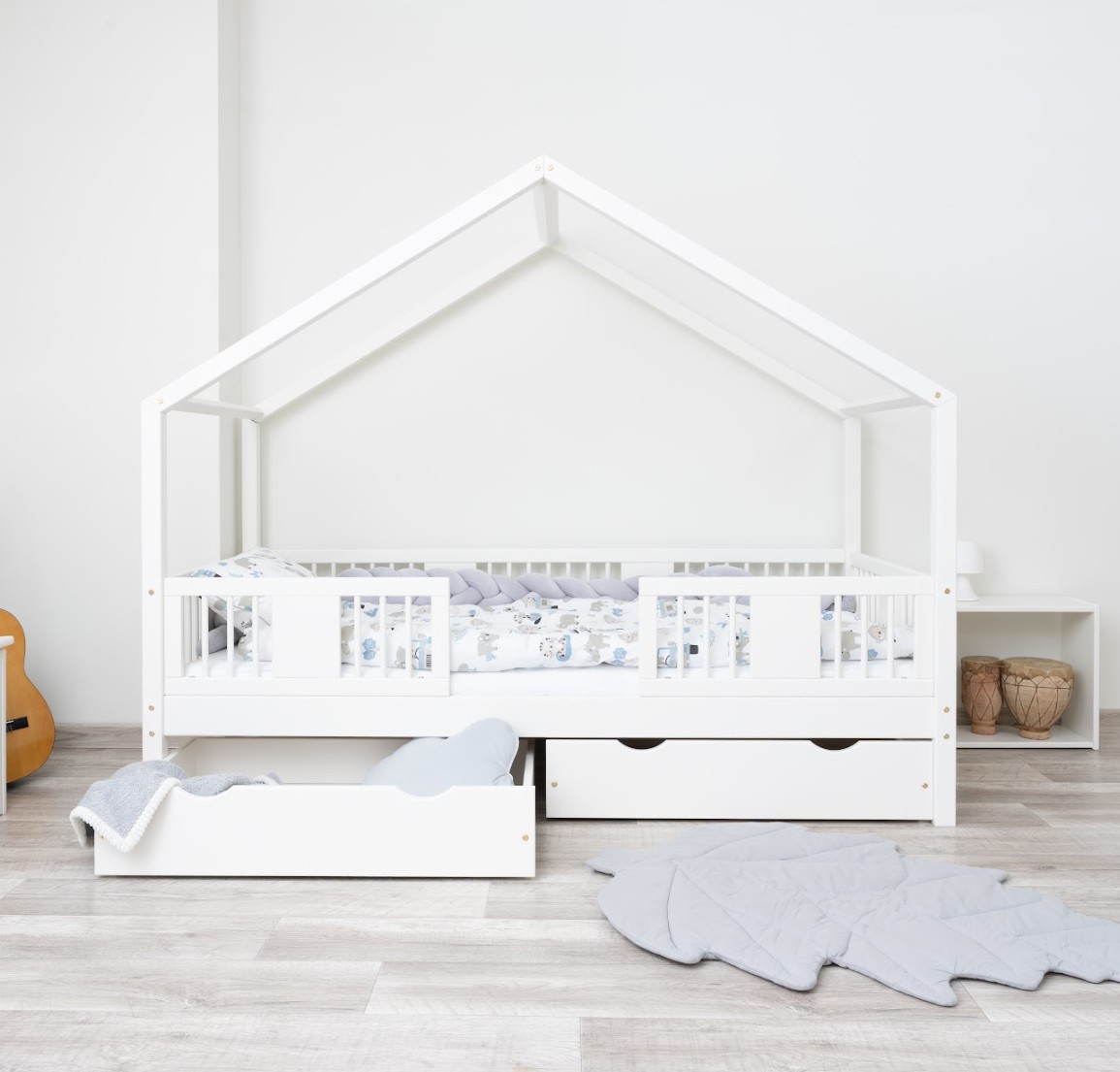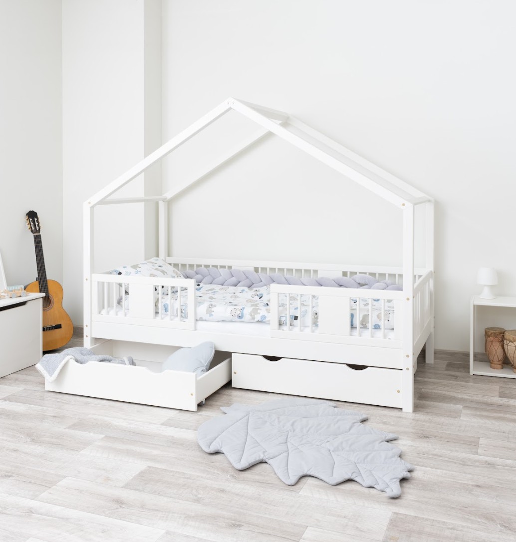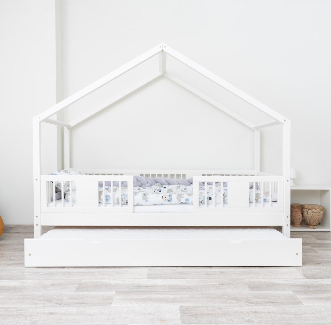 LUNA S 20 je víc než jen postel – je to malý, kouzelný prostor, kde vaše dítě spí, odpočívá a vytváří si vlastní příběhy. Díky o 20 cm vyššímu rámu získává postel nový rozměr funkčnosti: pod ni můžete umístit praktickou zásuvku na ložní prádlo, hračky nebo další výsuvnou postel – ideální pro sourozence nebo malé hosty na noc. Okamžik, kdy dítě vyroste z postýlky, je pro celou rodinu významným okamžikem. Pokud hledáte nábytek, který vašemu dítěti poskytne pocit bezpečí a vám dá jistotu investice do kvality, která vydrží roky, postel LUNA S s nohami o výšce 20 cm je vhodnou volbou. Skandinávský design postele se vyznačuje výraznými zaoblenými příčkami. Nejde jen o estetiku – zaoblené tvary jsou pro malé ručičky příjemnější na dotek a minimalizují riziko bolestivých nárazů při hraní. Přírodní borovicové dřevo vytváří v místnosti uklidňující mikroklima. Model LUNA používá vybrané, vrstveně lepené borovicové dřevo o síle 2,2 cm, které eliminuje namáhání a snižuje riziko praskání nebo deformace. To zaručuje stabilitu a tichý provoz i po letech používání. Povrchová úprava je provedena ekologickými barvami na vodní bázi, které splňují evropskou normu EN 71-3 – bez zápachu, toxinů a škodlivých látek. Díky tomu je postel LUNA S 20 ideální do pokojů alergiků nebo kojenců. Postel nabízíme také ve verzi bez povrchových úprav - nelakované dřevo. Díky tomu ji lze snadno přizpůsobit - její vzhled můžete upravit mořením, lakováním nebo malováním dle vlastního uvážení. Design domečku stimuluje kreativitu – přes den se postel promění v hrací prostor a v noci podporuje klid. Stačí přidat měkké bavlněné ložní prádlo a tlumené osvětlení a vytvořit tak útulnou atmosféru pro spaní.