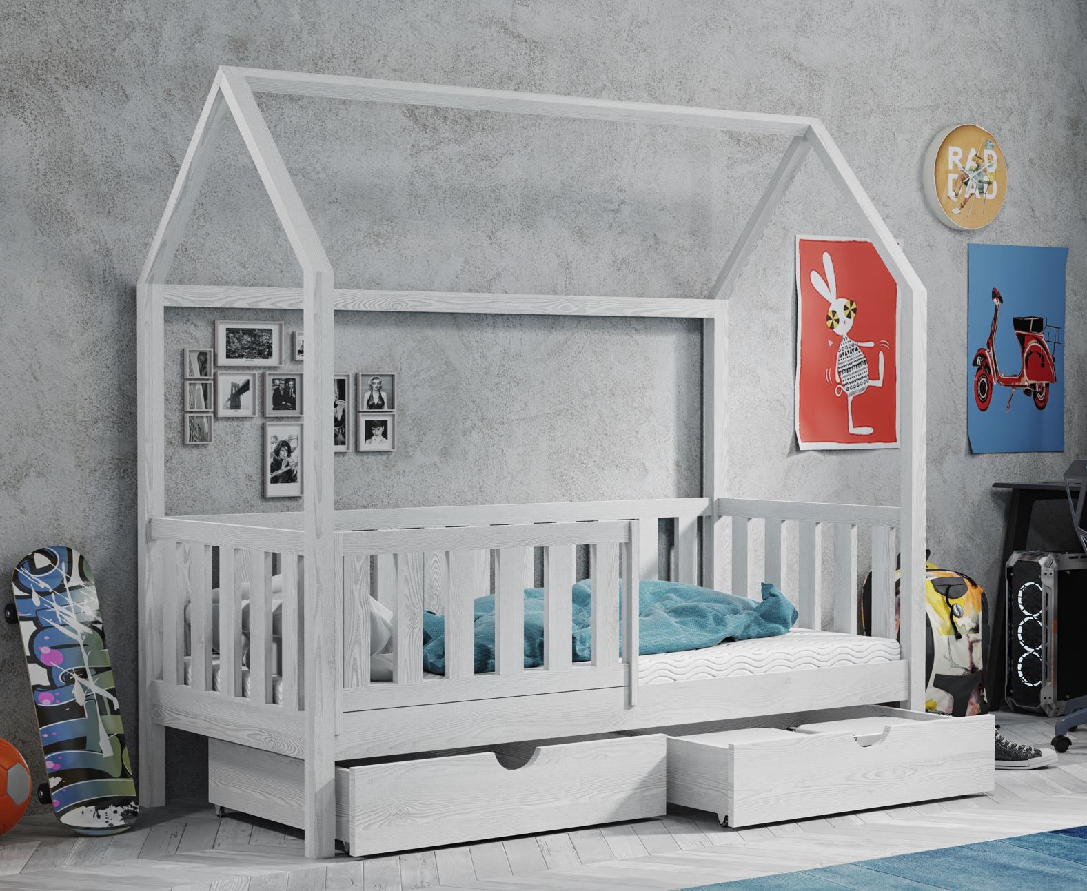 Domečková postel je splněným snem každého dítěte! Tento typ nábytku podněcuje fantazii během dne a umožňuje bezpečný a pohodlný spánek v noci. MAGDA je jednolůžková dětská postel ve tvaru domečku. Jedná se o lehký, odolný a prostorný kus nábytku, který dá pokojíčku vašeho dítěte zcela novou kvalitu. Postel je vyrobena z masivního borovicového dřeva, díky čemuž je mimořádně pevná a odolná proti poškození. U bočnic a čel je šířka použitého materiálu 2,6 cm. Postel je ošetřena lakem na vodní bázi, který je ekologický, šetrný k pokožce a odolný vůči různým druhům poškození. Bezpečnostní zábrana zajistí vašemu dítěti bezpečný spánek po celou noc a zabrání možnosti vypadnutí. Bariérka je odnímatelná a lze ji umístit na pravou i levou stranu postele. Postel je navíc dodávána se dvěma hlubokými zásuvkami, které lze využít jako místo pro lůžkoviny nebo hračky. Součástí postele je také kvalitní pevný rošt. Funkčnost, pohodlí a netradiční vzhled dělají z Magdy zajímavý prvek, který se bude vyjímat v každém dětském pokojíčku.