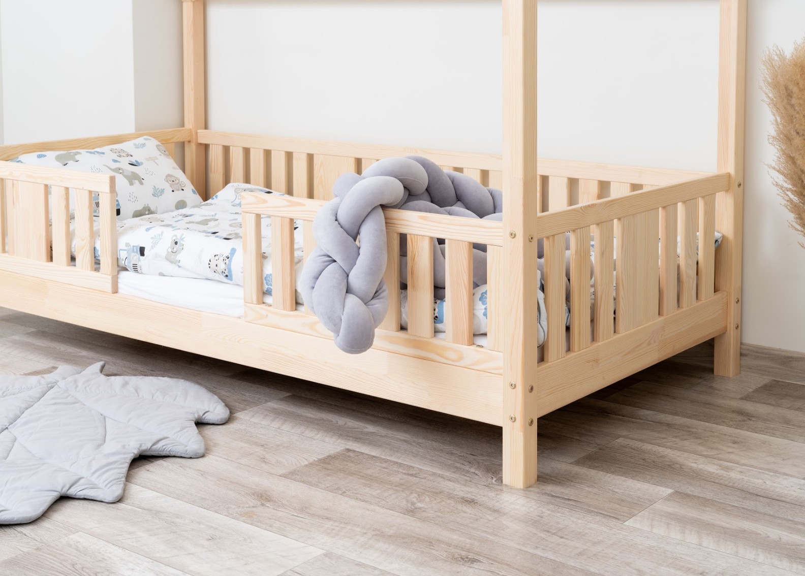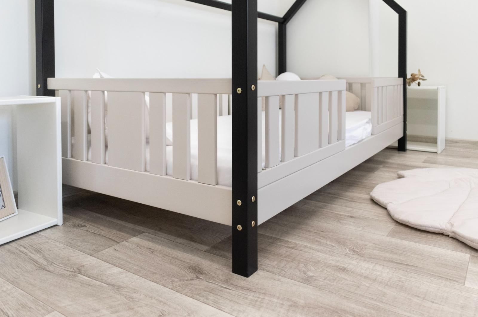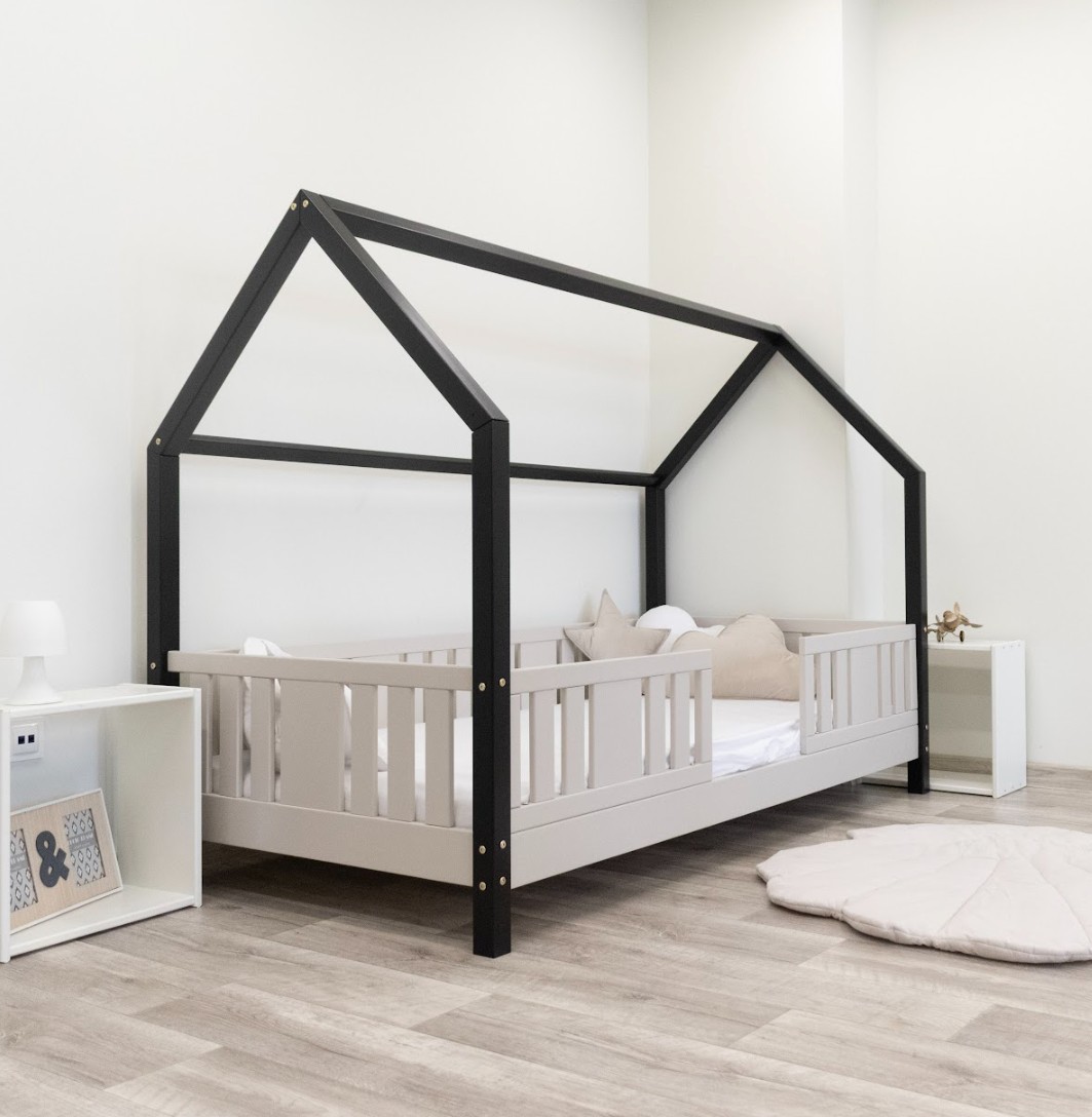 NIKO L 10 je dětská postel ve tvaru domečku, která v sobě spojuje bezpečnost, funkčnost a útulný pohádkový design. Díky nízkému profilu a 10 cm vysoké noze je ideální jako první postel pro dítě – podporuje nezávislost a zároveň zajišťuje maximální bezpečnost. Vyrobena z přírodního borovicového dřeva a natřena ekologickými barvami na vodní bázi vytváří teplý a bezpečný prostor pro spánek, hraní a relaxaci. Postel NIKO L 10 se vyznačuje výrazným dlouhým baldachýnem ve tvaru domečku, který v dětském pokoji vytváří jedinečně útulnou atmosféru. Dřevěný rám s jemným baldachýnem promění klasickou jednolůžkovou postel v kouzelný prostor – místo, kde se přirozeně prolíná spánek, hra a relaxace. Baldachýn můžete ozdobit světýlky, girlandami nebo látkami a vytvořit tak klidný koutek pro relaxaci nebo pohádkovou základnu pro vašeho malého průzkumníka. Decentní svislé lamely dodávají konstrukci lehký a elegantní vzhled a zároveň zvyšují pocit bezpečí během spánku. Postel je vyrobena výhradně z přírodního borovicového dřeva o síle 2,2 cm, které je známé svou odolností, stabilitou a přátelským charakterem. Každý prvek byl pečlivě broušen a všechny hrany jsou jemně zaoblené, aby se eliminovalo riziko poranění. Použité ekologické barvy na vodní bázi, které splňují normu EN 71-3, neobsahují toxiny ani pachy, takže je postel bezpečná i pro nejmenší děti a alergiky. Postel nabízíme také ve verzi bez povrchových úprav - nelakované dřevo. Díky tomu ji lze snadno přizpůsobit - její vzhled můžete upravit mořením, lakováním nebo malováním dle vlastního uvážení.