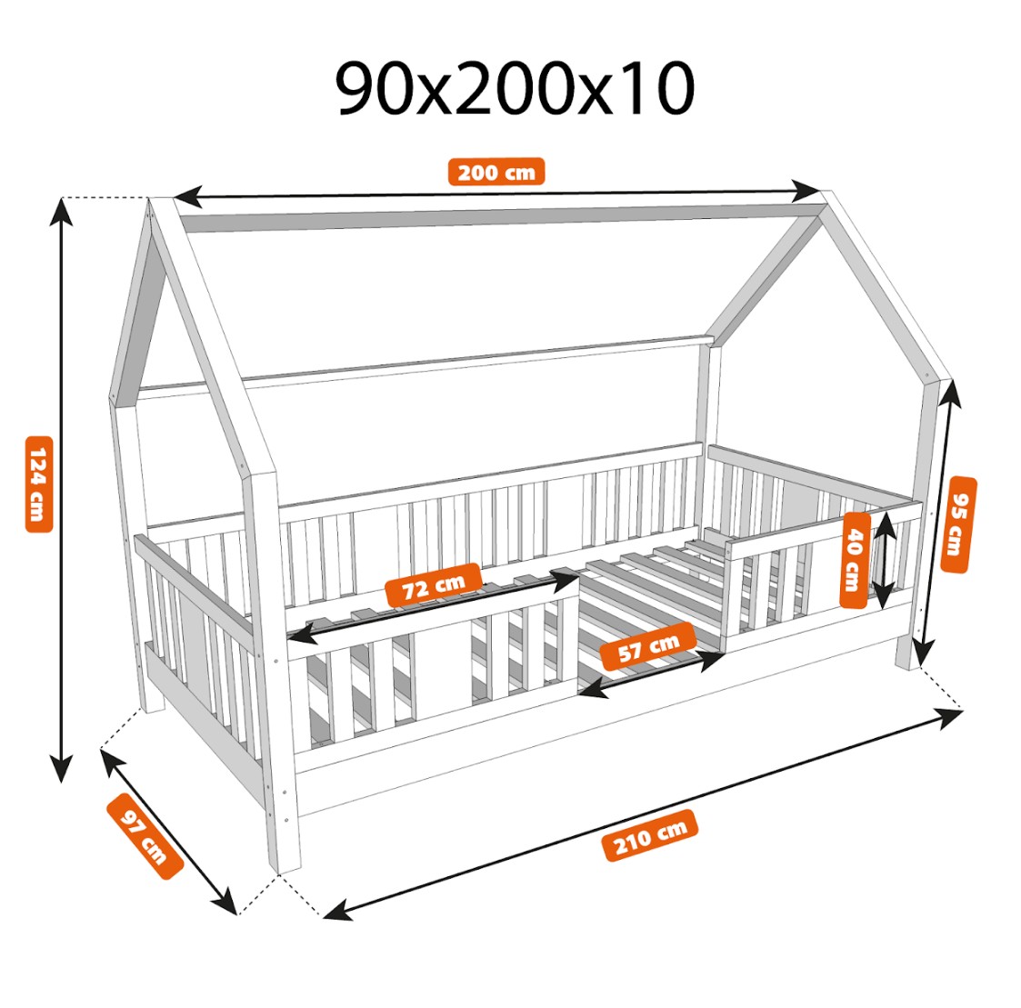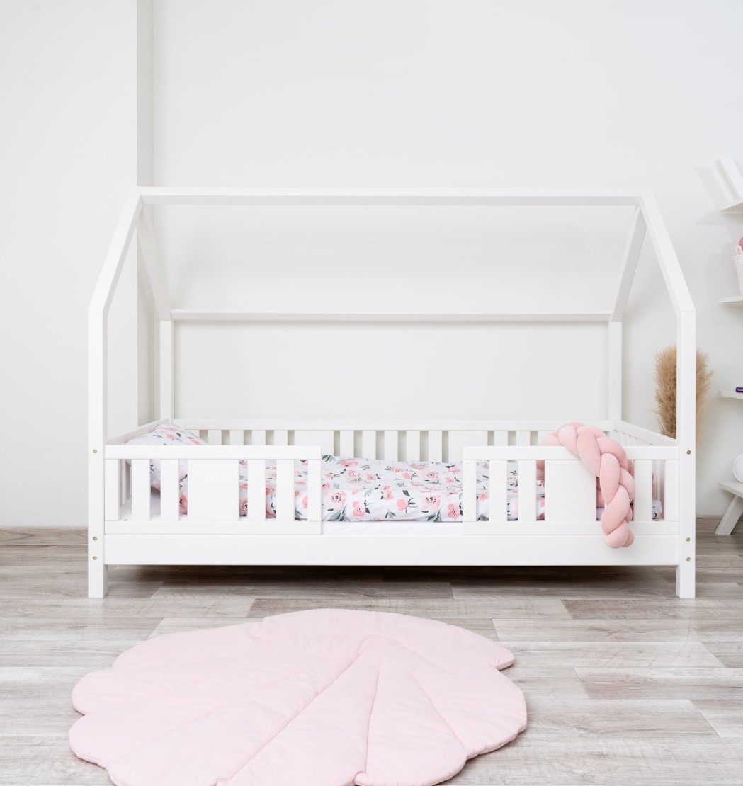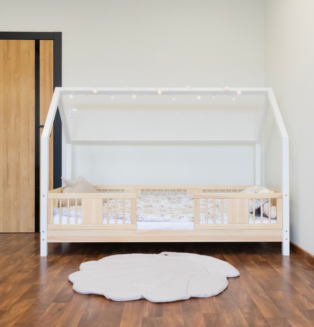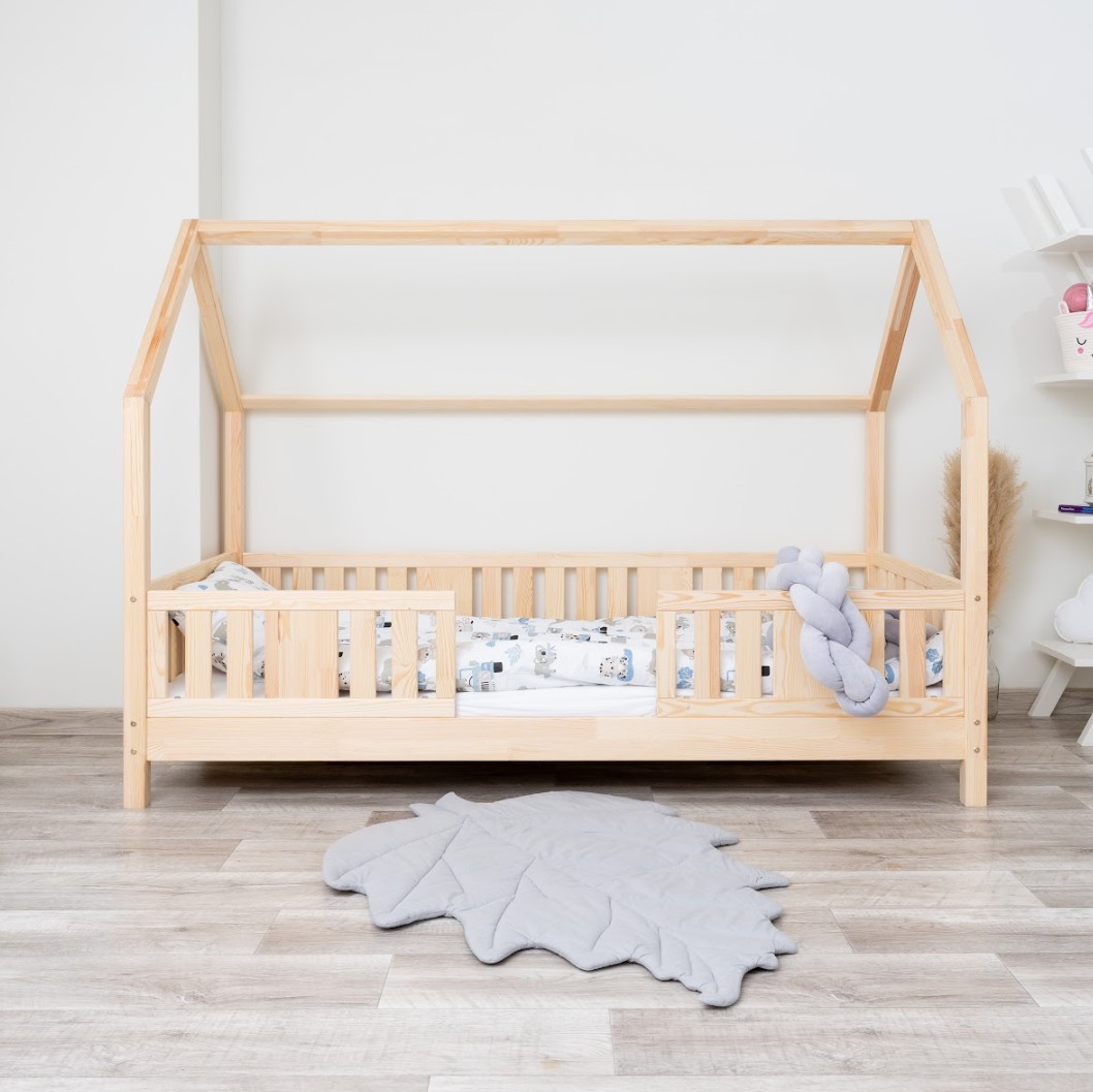 NIKO L 10 je dětská postel ve tvaru domečku, která v sobě spojuje bezpečnost, funkčnost a útulný pohádkový design. Díky nízkému profilu a 10 cm vysoké noze je ideální jako první postel pro dítě – podporuje nezávislost a zároveň zajišťuje maximální bezpečnost. Vyrobena z přírodního borovicového dřeva a natřena ekologickými barvami na vodní bázi vytváří teplý a bezpečný prostor pro spánek, hraní a relaxaci. Postel NIKO L 10 se vyznačuje výrazným dlouhým baldachýnem ve tvaru domečku, který v dětském pokoji vytváří jedinečně útulnou atmosféru. Dřevěný rám s jemným baldachýnem promění klasickou jednolůžkovou postel v kouzelný prostor – místo, kde se přirozeně prolíná spánek, hra a relaxace. Baldachýn můžete ozdobit světýlky, girlandami nebo látkami a vytvořit tak klidný koutek pro relaxaci nebo pohádkovou základnu pro vašeho malého průzkumníka. Decentní svislé lamely dodávají konstrukci lehký a elegantní vzhled a zároveň zvyšují pocit bezpečí během spánku. Postel je vyrobena výhradně z přírodního borovicového dřeva o síle 2,2 cm, které je známé svou odolností, stabilitou a přátelským charakterem. Každý prvek byl pečlivě broušen a všechny hrany jsou jemně zaoblené, aby se eliminovalo riziko poranění. Použité ekologické barvy na vodní bázi, které splňují normu EN 71-3, neobsahují toxiny ani pachy, takže je postel bezpečná i pro nejmenší děti a alergiky. Postel nabízíme také ve verzi bez povrchových úprav - nelakované dřevo. Díky tomu ji lze snadno přizpůsobit - její vzhled můžete upravit mořením, lakováním nebo malováním dle vlastního uvážení.