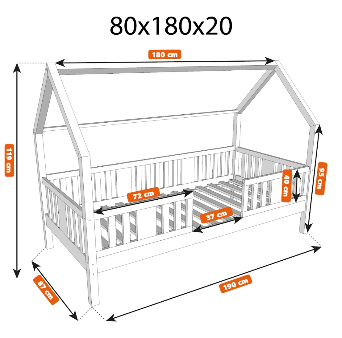Dětská domečková postel z masivu borovice NIKO L 20 - 180x80 cm