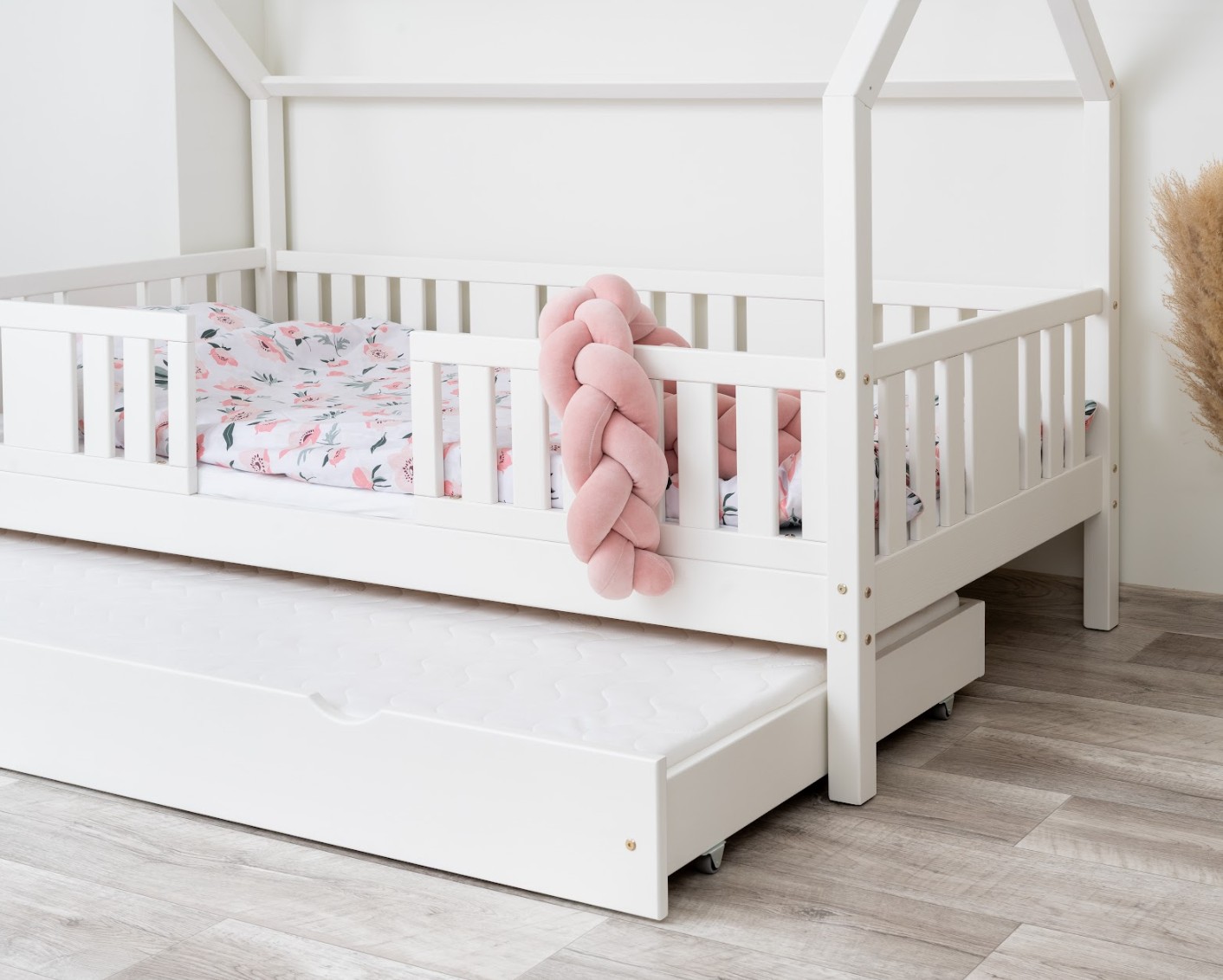 Výška nohou 20 cm otevírá nové designové možnosti. Pod postel můžete umístit jednu velkou zásuvku, dvě menší nebo zásuvku s funkcí spaní – ideální řešení pro sourozence nebo hosty. Je to praktické místo pro uložení ložního prádla, oblečení, dek a oblíbených hraček, které máte vždy na dosah ruky, ale mimo dohled. Díky tomu je NIKO L 20 nejen krásným designovým prvkem, ale také funkčním kusem nábytku, který pomáhá udržovat harmonii a pořádek v dětském prostoru.